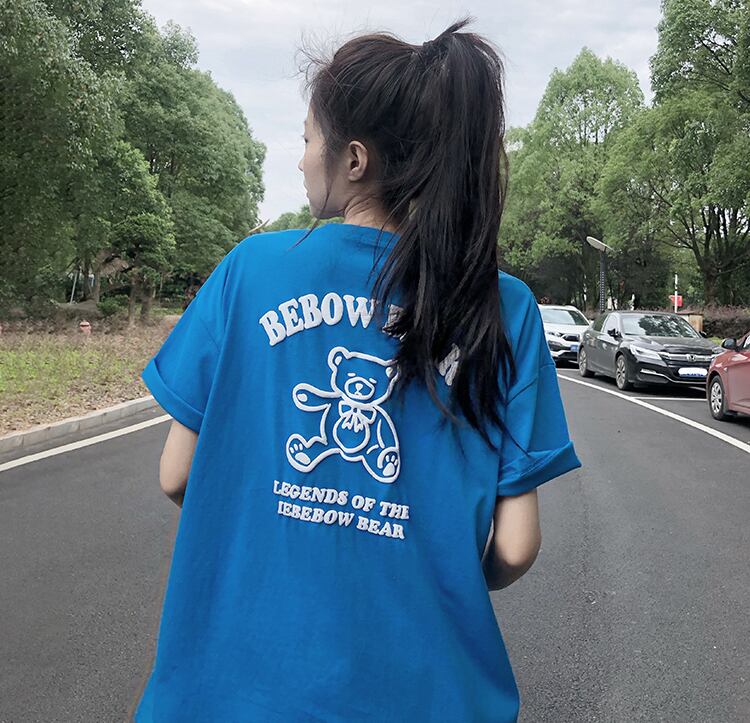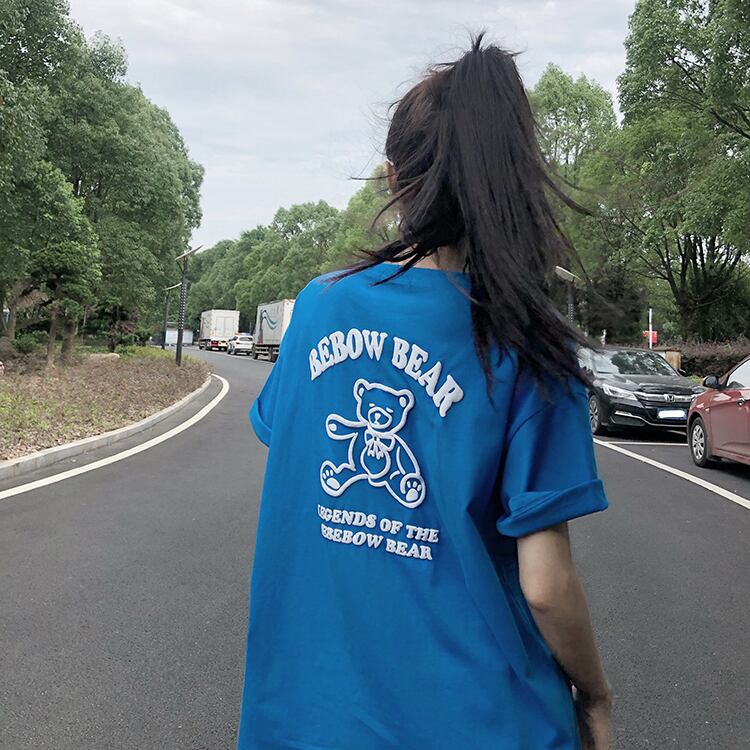 スタンダードブルーTシャツ夏服トップス コットン レトロ 夏物 SYJ47406489257