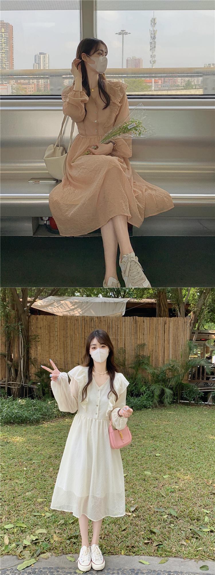 Vネックワンピーススプリングスカート ピンク 春物 SYJ29893795970