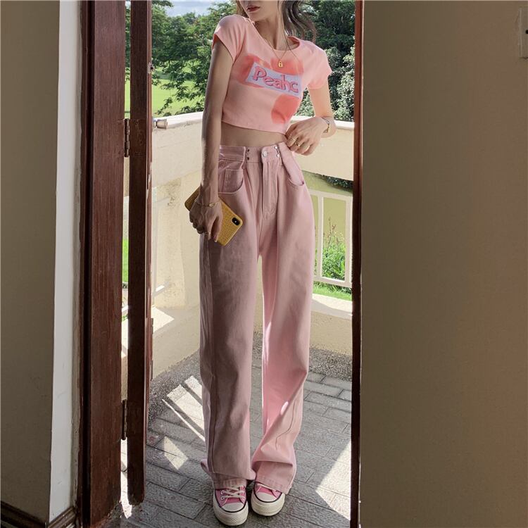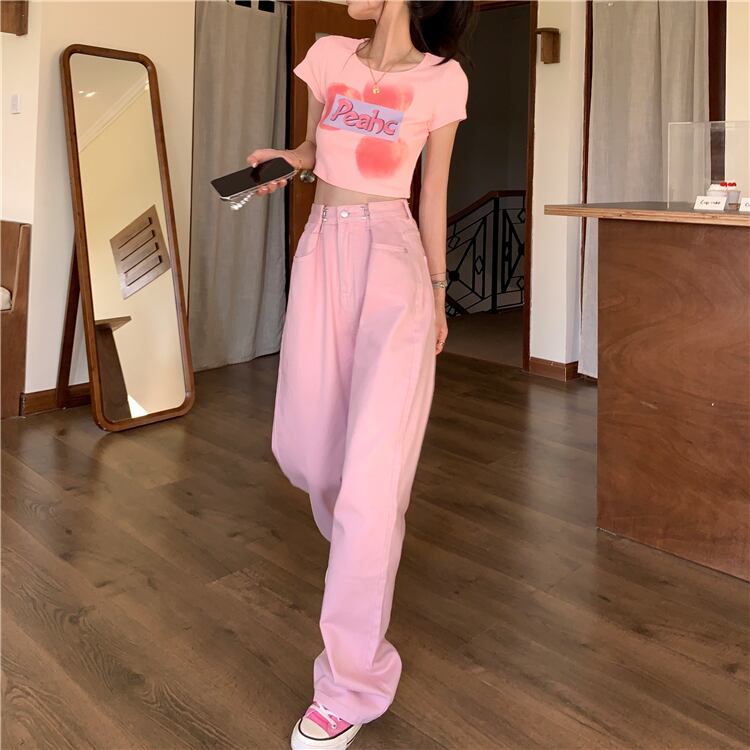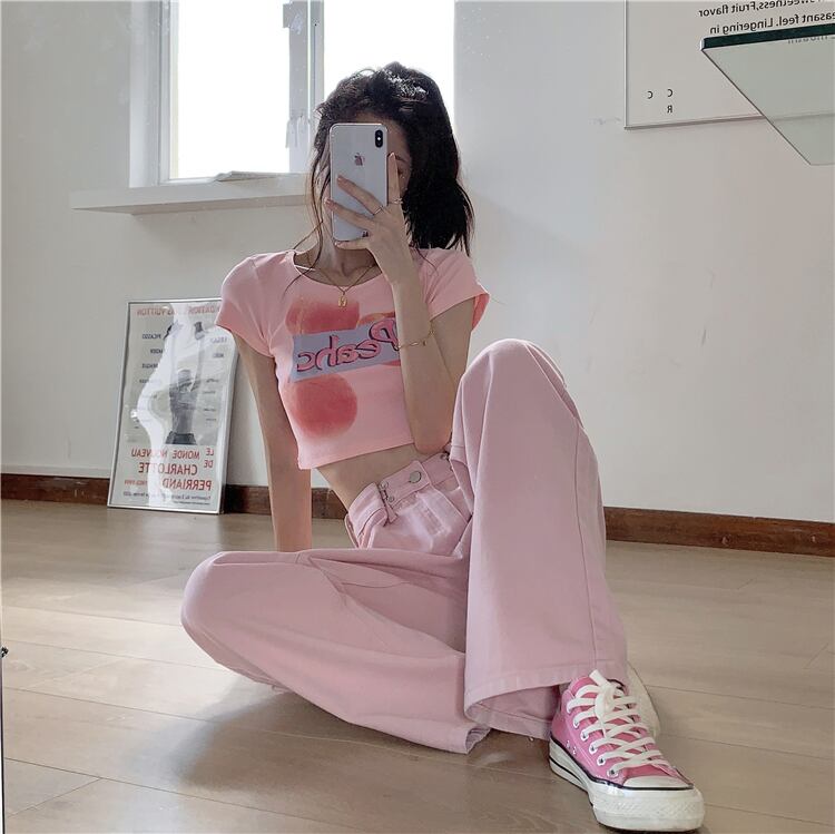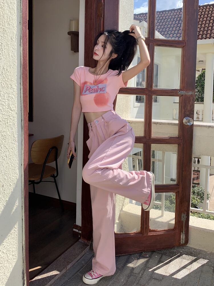 ショートTシャツ夏服スリムトップス NEW ピンク 大人ガーリー スウィート キュート カジュアル 夏物 SYJ43693039842