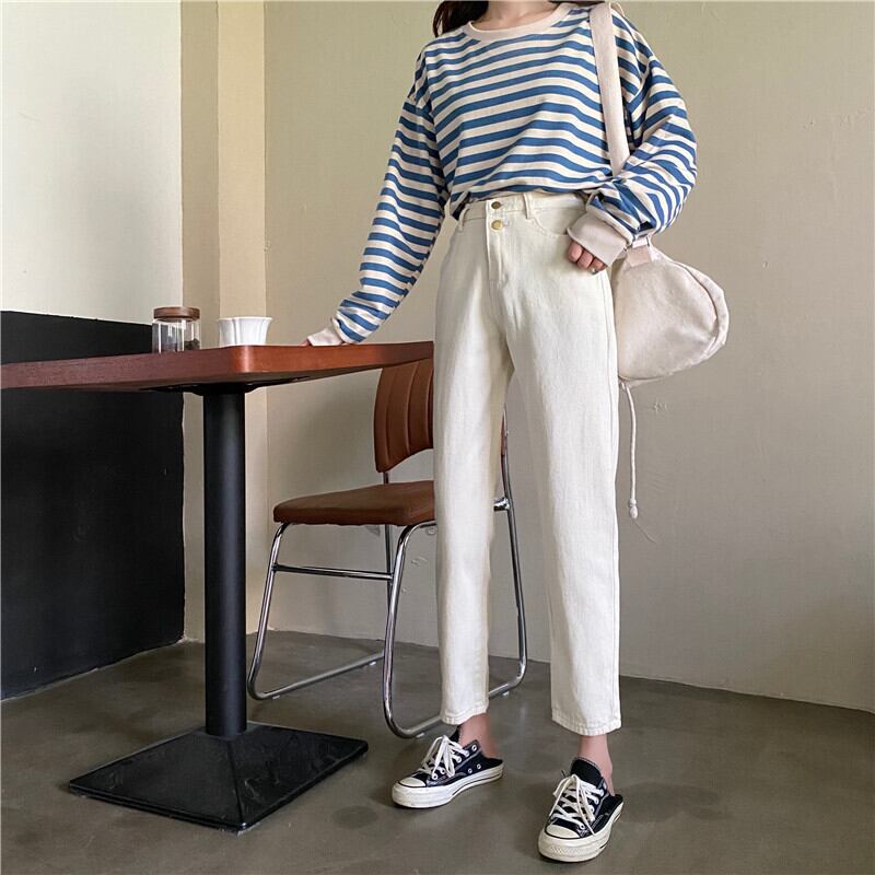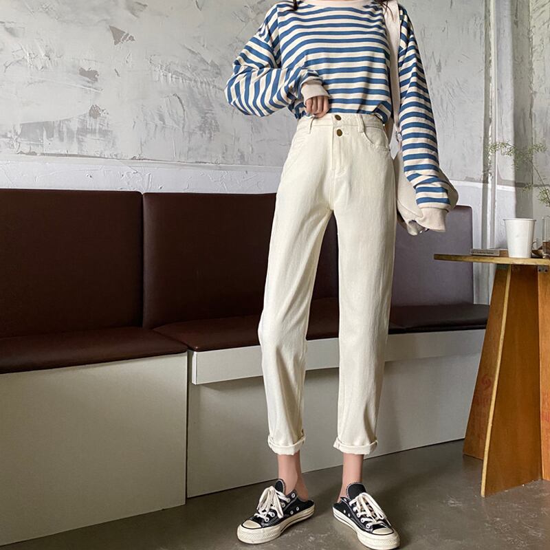 ベージュジーンズ スプリングハイウェストルーズパンツ 春物 ウエスト SYJ43791694551