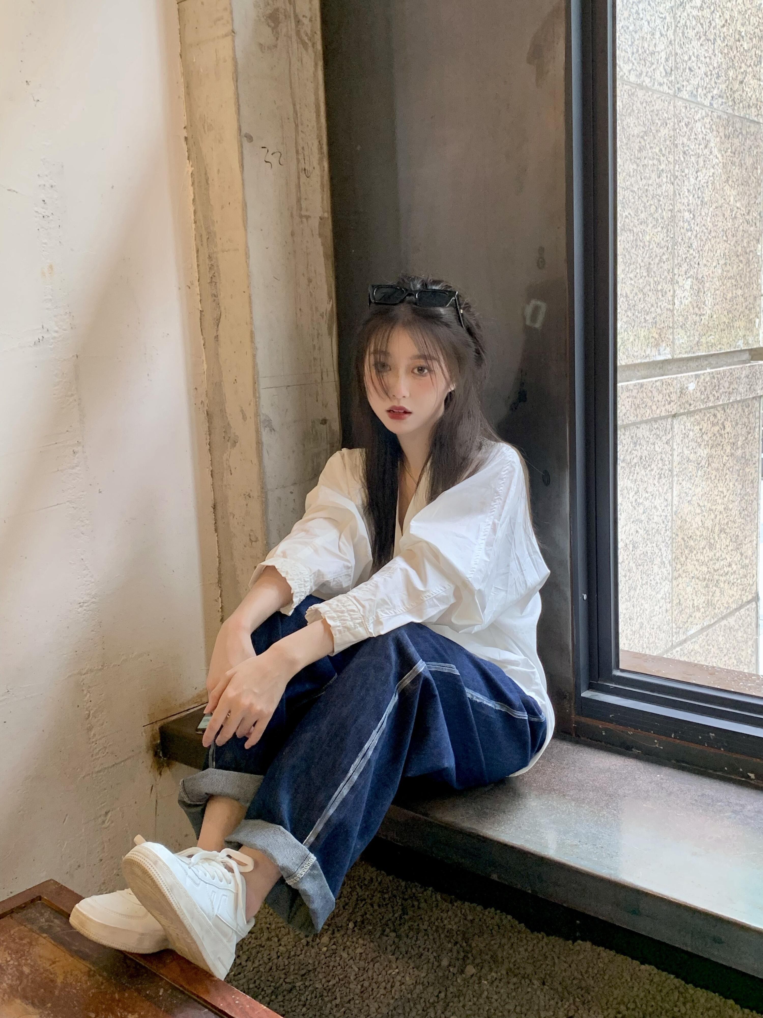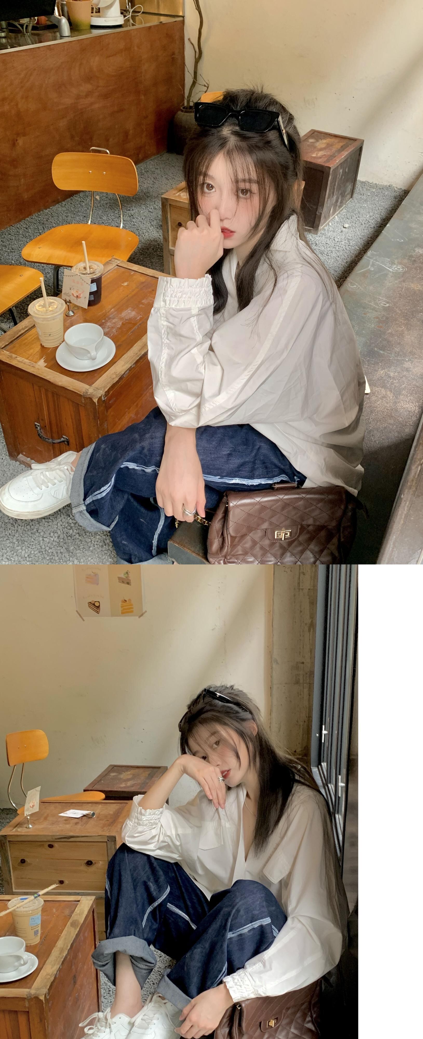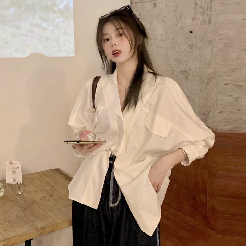 ホワイトシャツ スプリングスタンダードスタイルトップス ロング レトロ 春物 長袖 SYJ73243683496
