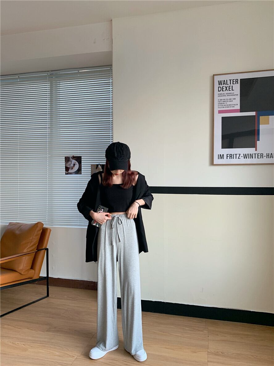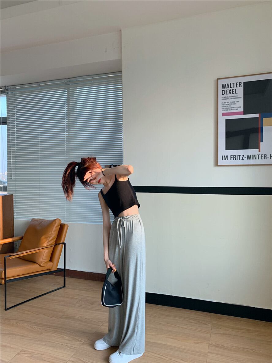 グレーカジュアルパンツ 夏服ハイウェストスリムルーズ 夏物 ウエスト SYJ75420139250
