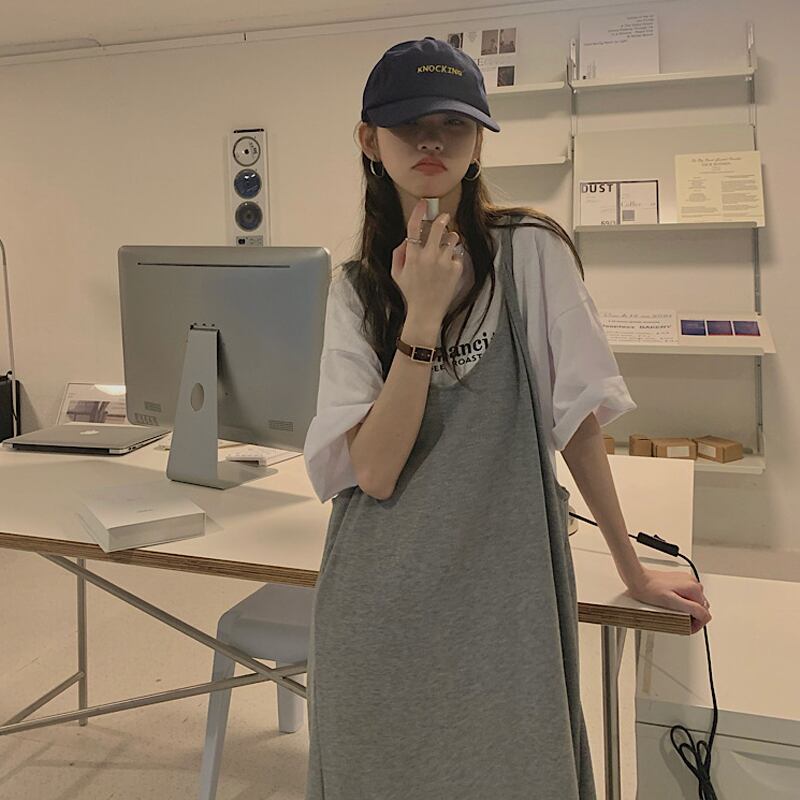 スタイルグレーワンピース夏服ルーズカジュアルロングスカート 夏物 SYJ98813073921