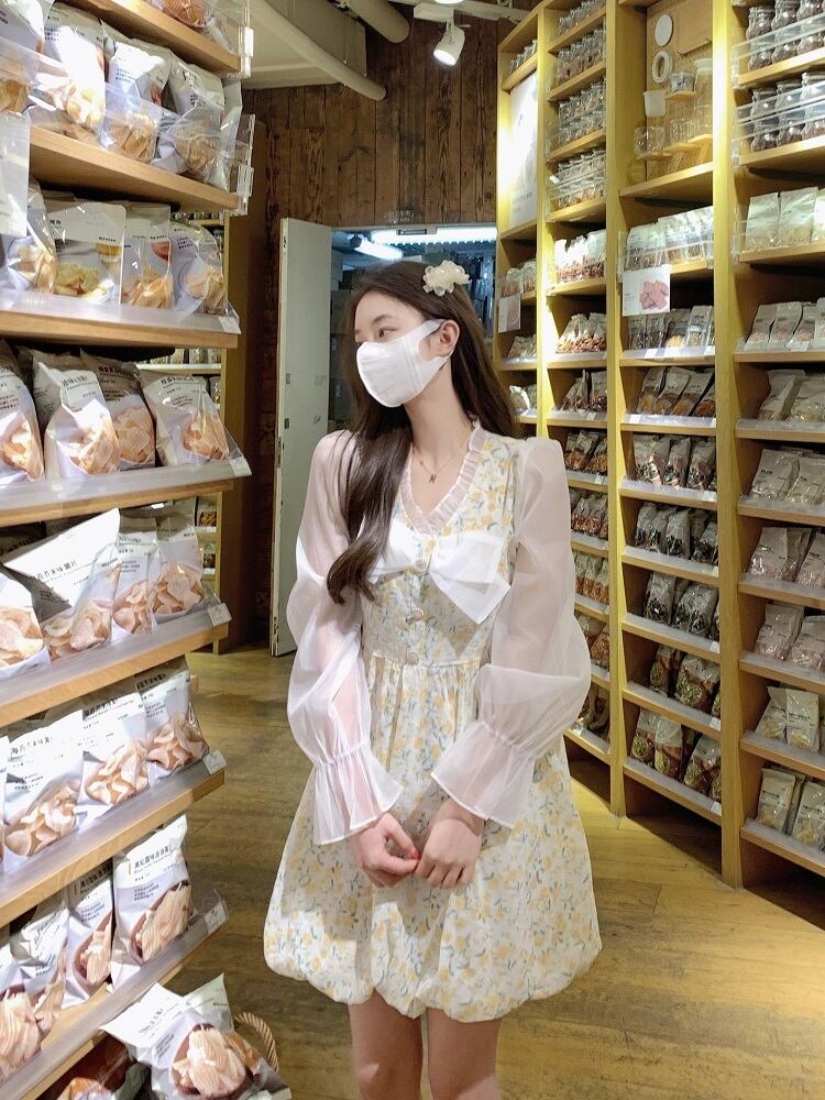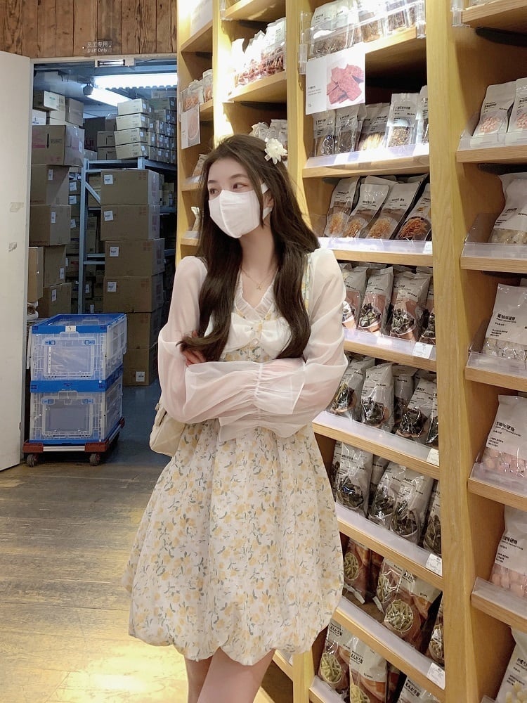 フローラルワンピースレディーススプリングスカート ロング 大人ガーリー スウィート キュート カジュアル 春物 花柄 長袖 SYJ97227351960