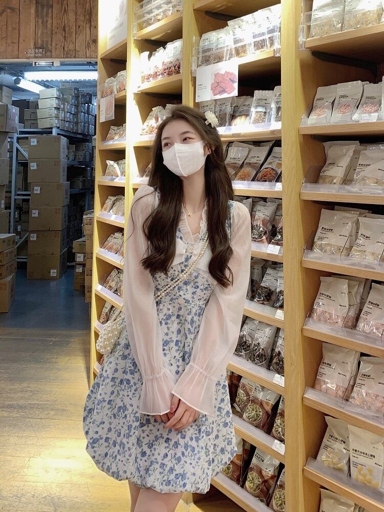 フローラルワンピースレディーススプリングスカート ロング 大人ガーリー スウィート キュート カジュアル 春物 花柄 長袖 SYJ97227351960