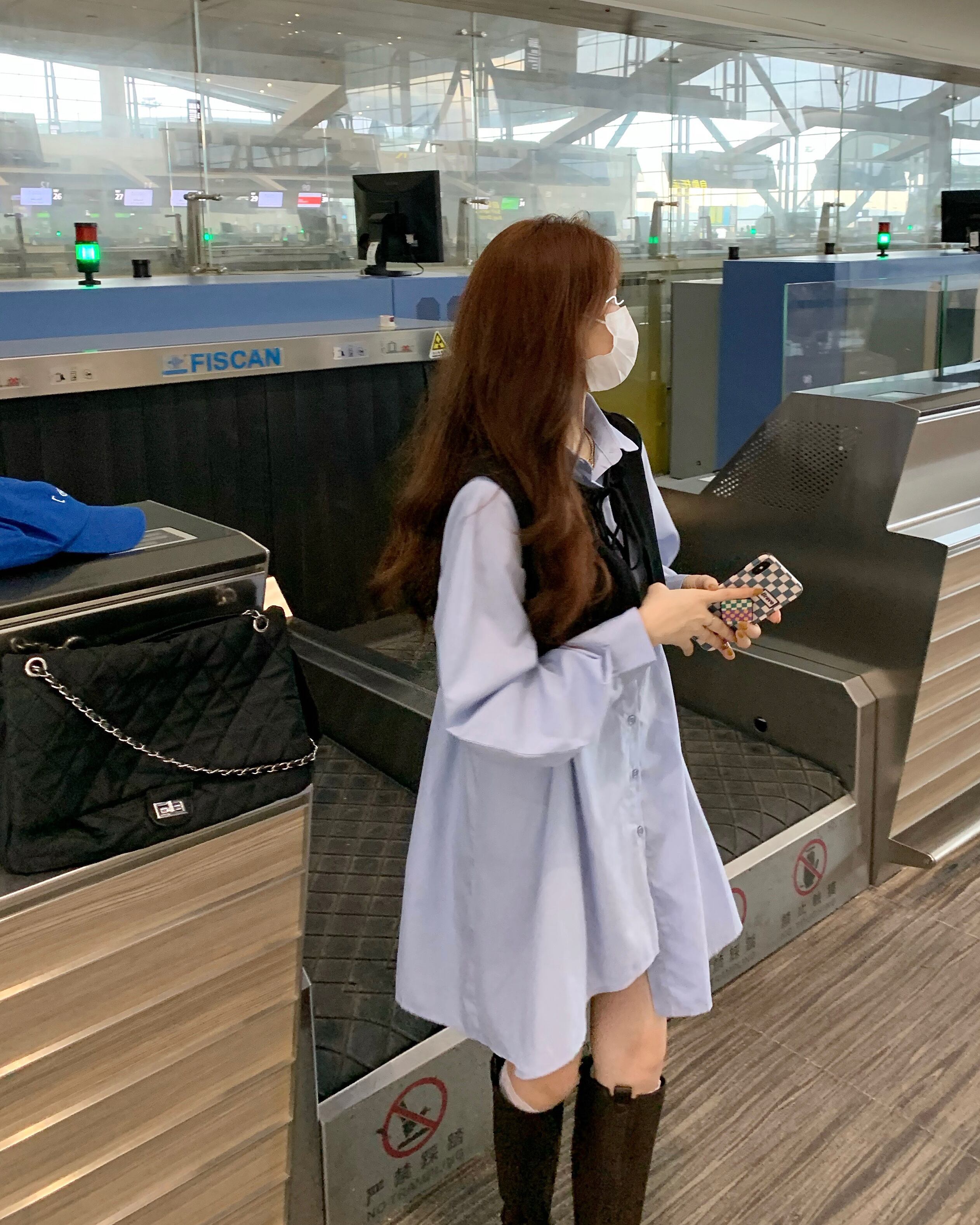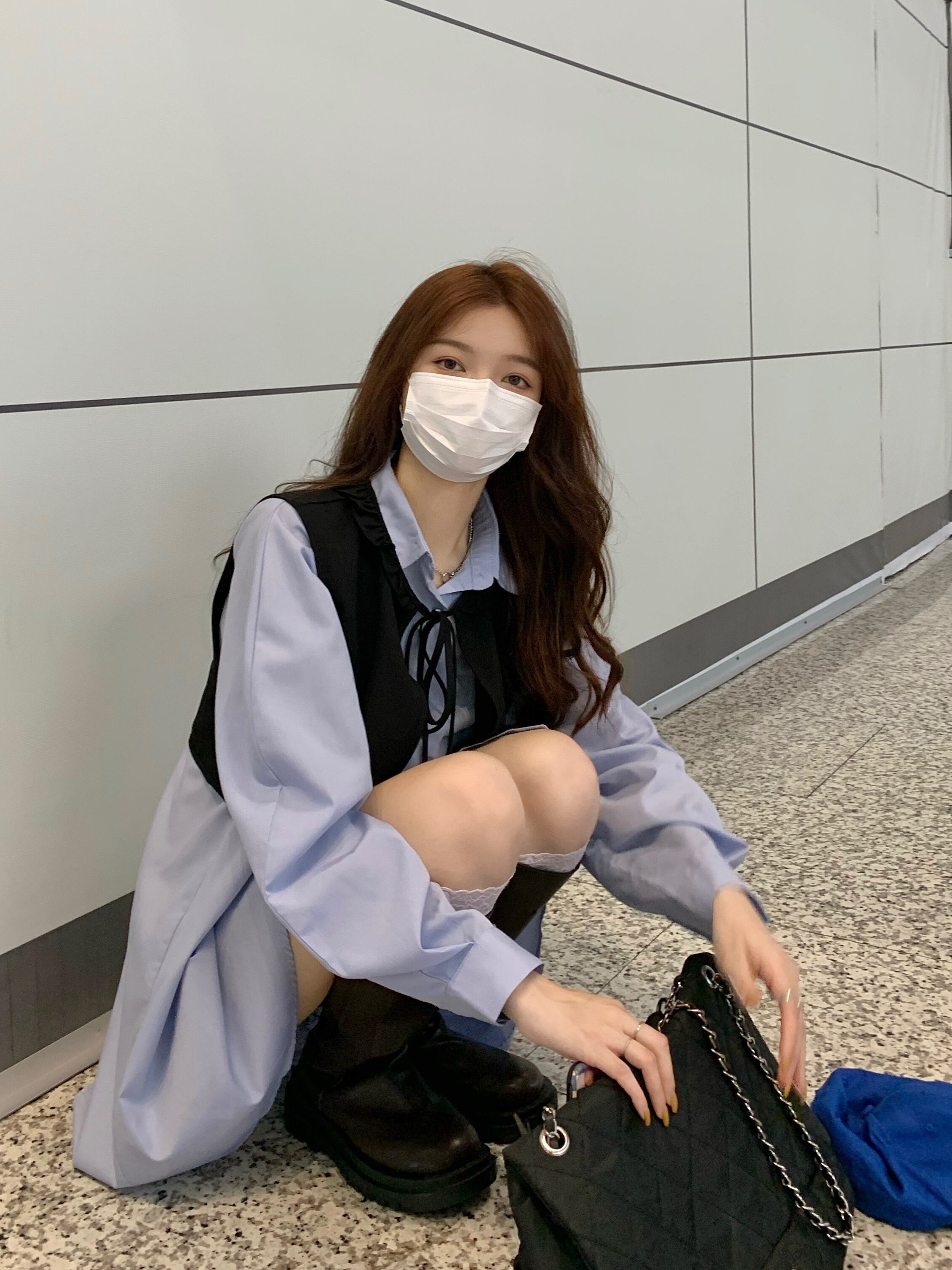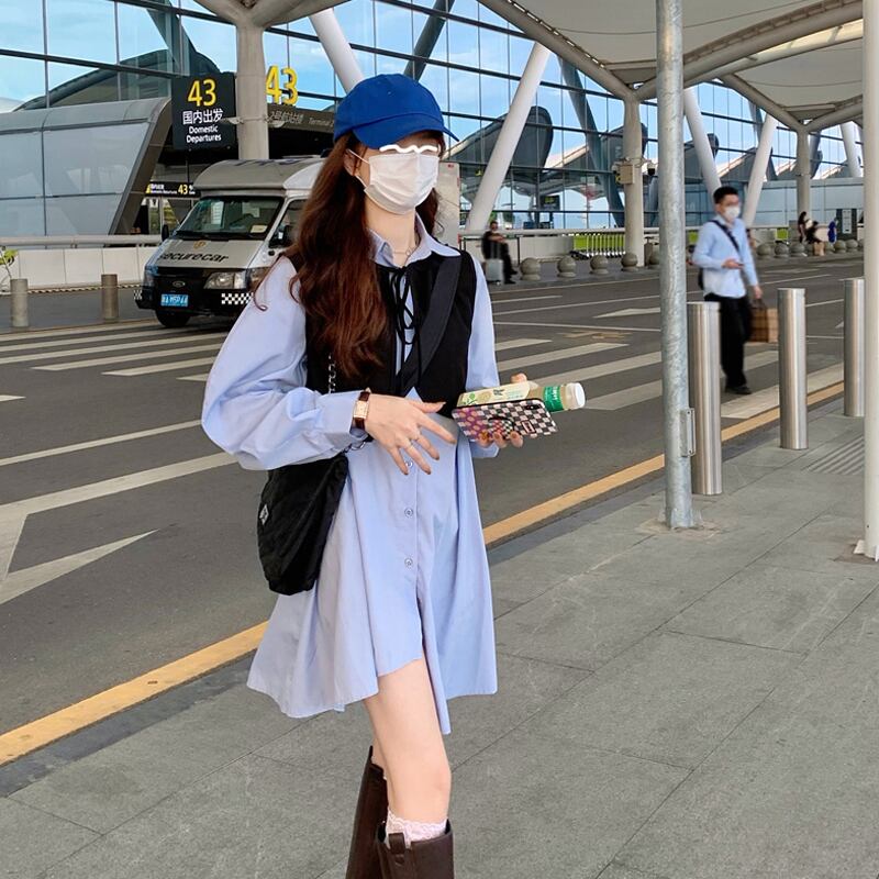 ブルーカラーシャツ ワンピーススプリングスタンダードスカート レトロ 春物 SYJ21434216577