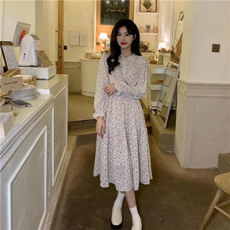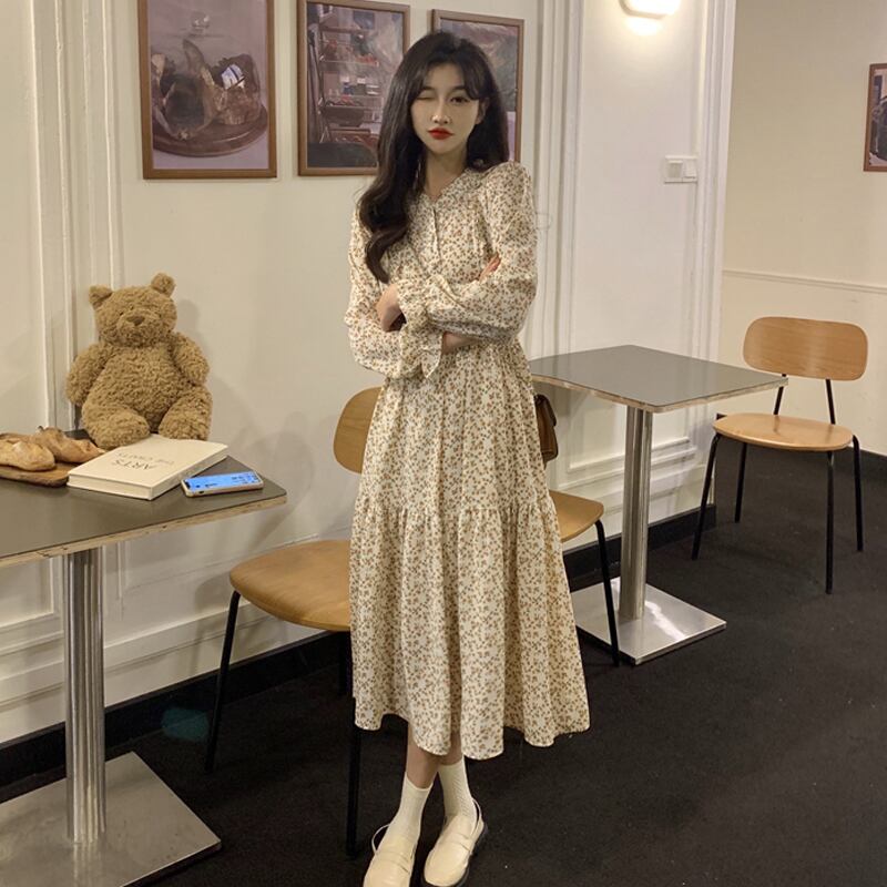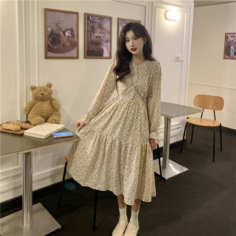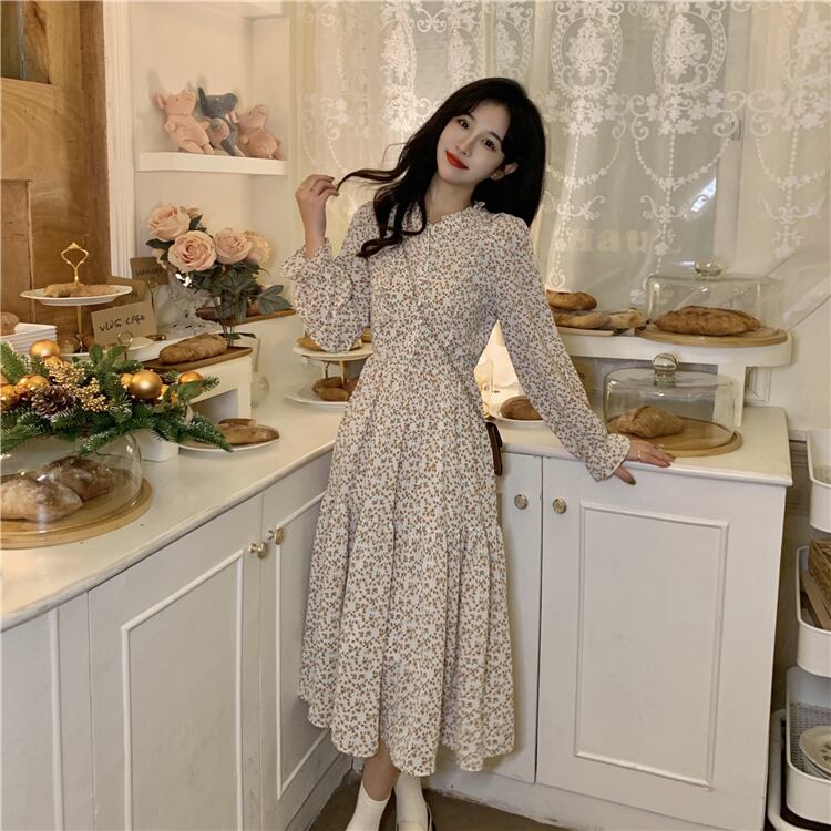 フローラル長袖スリーブワンピーススプリングスカート ロング 春物 花柄 フラワーデザイン SYJ71795230438