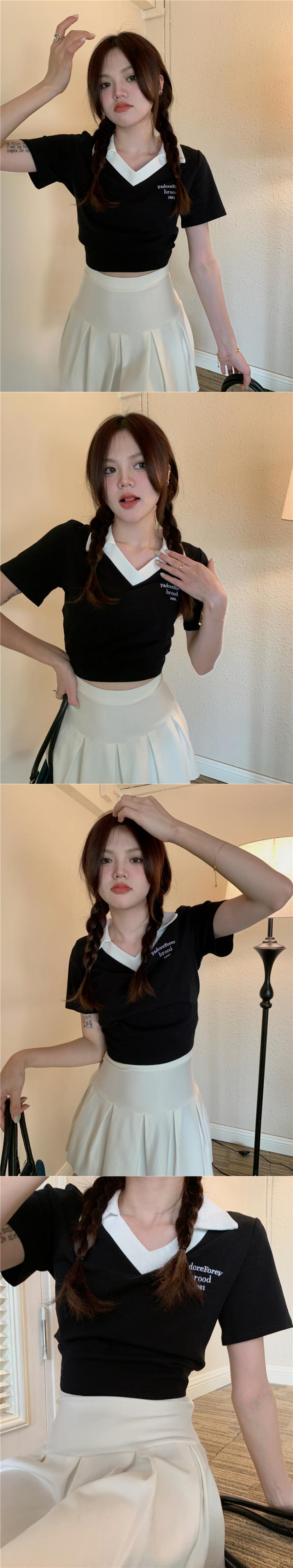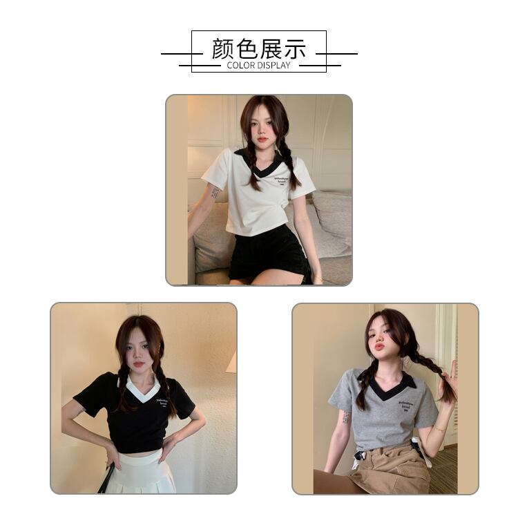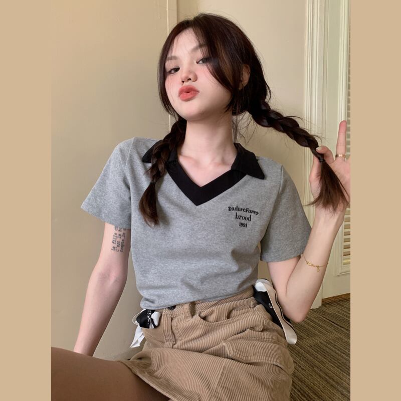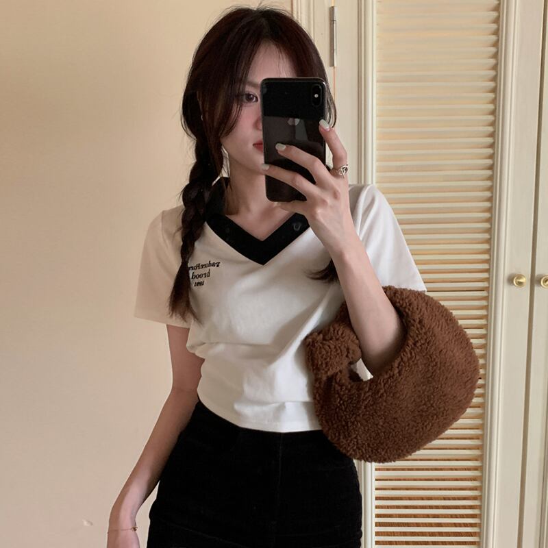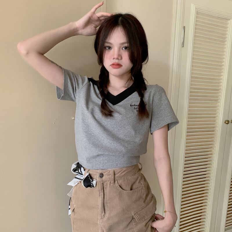 VネックショートTシャツ夏服スリムトップス NEW コットン 夏物 SYJ47203706010