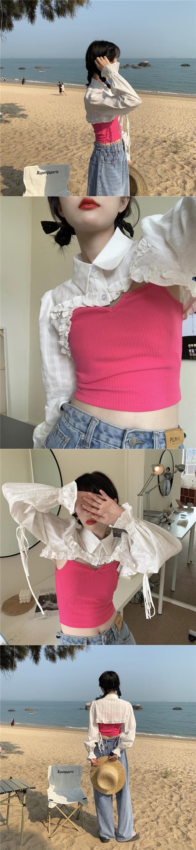色:白いシャツのワンピース,ピンクのスリングワンピース