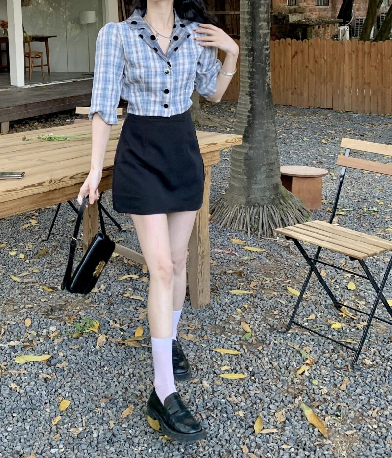 色:シングルチェックシャツ,ワンピーススカート