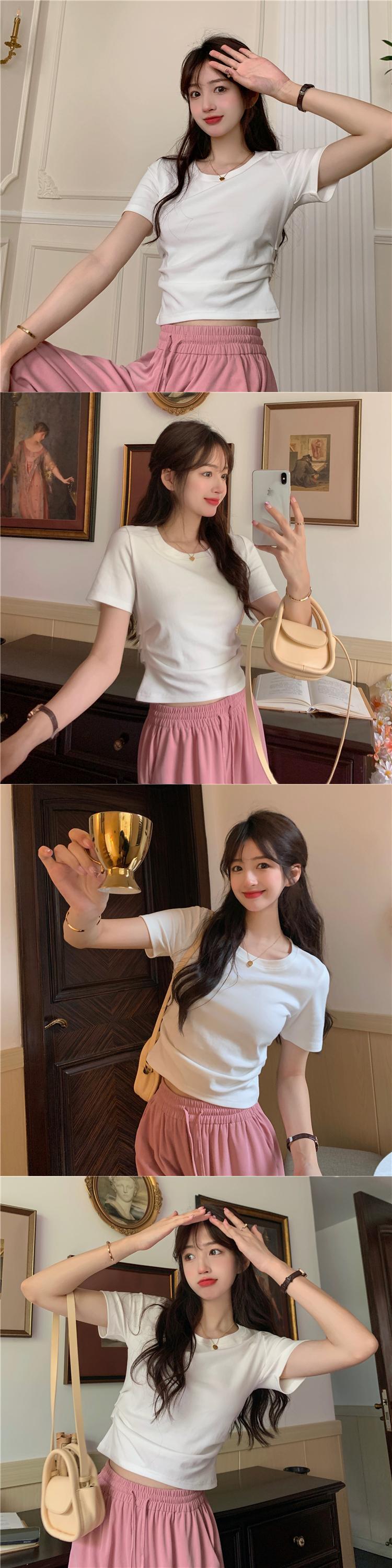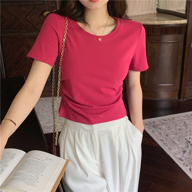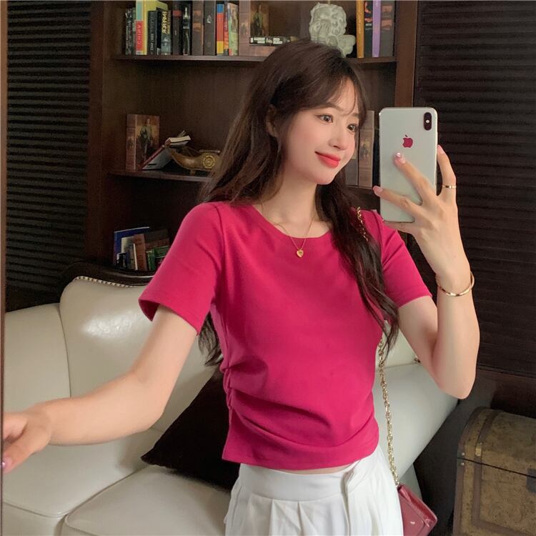 カラーショートTシャツ夏服スリムトップス 大人ガーリー スウィート キュート カジュアル 夏物 SYJ51454862078