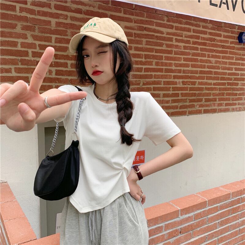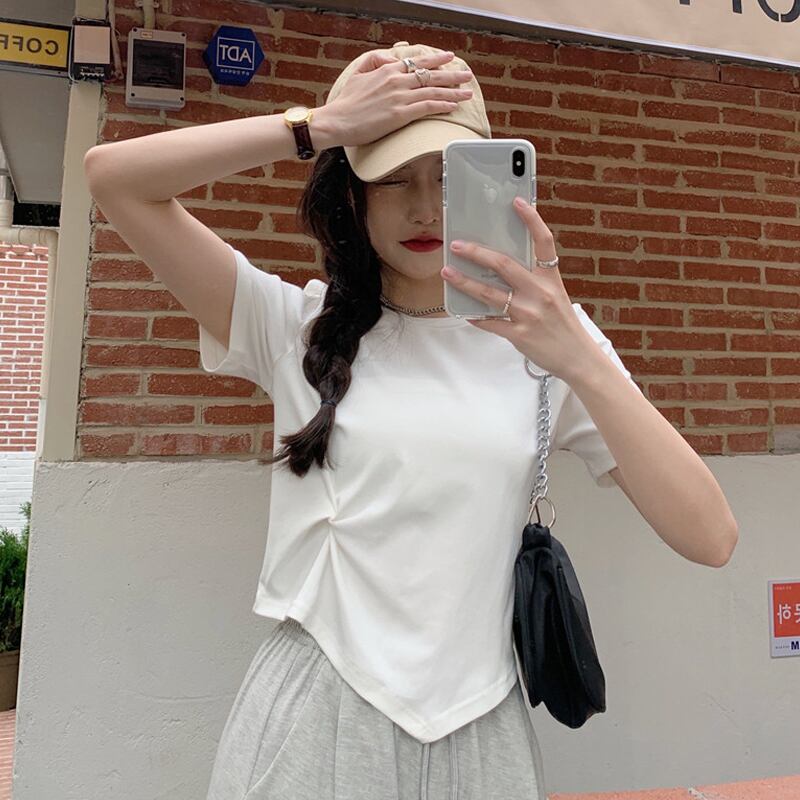 ホワイトショートTシャツ夏服トップス 大人ガーリー スウィート キュート カジュアル 夏物 SYJ60727234949