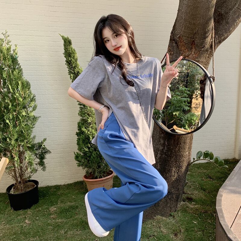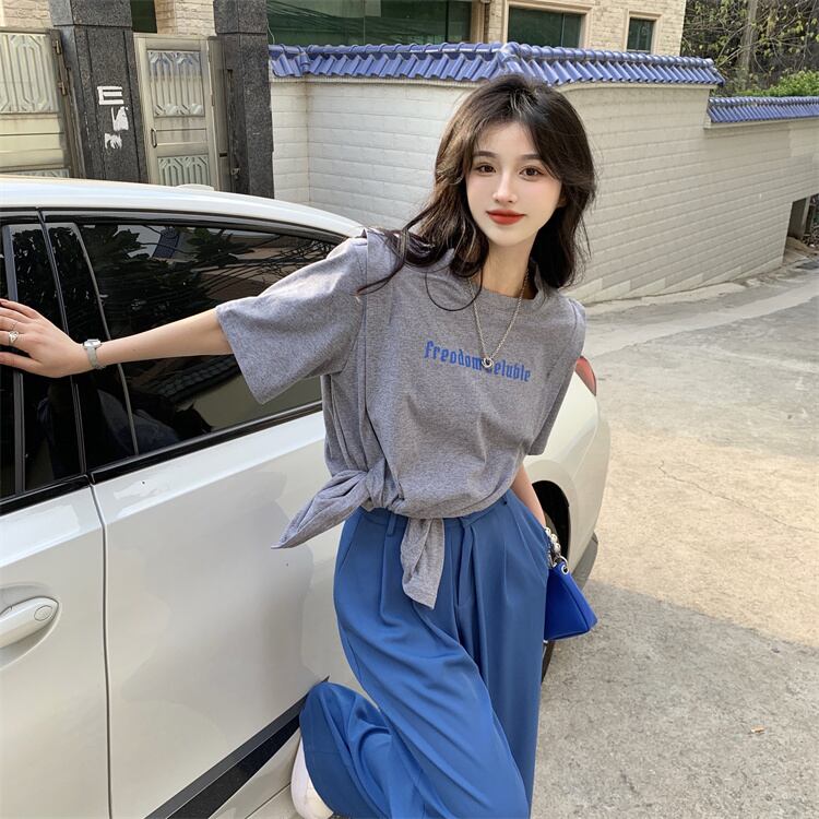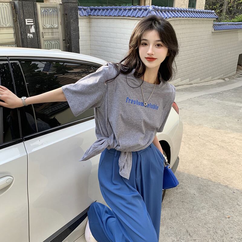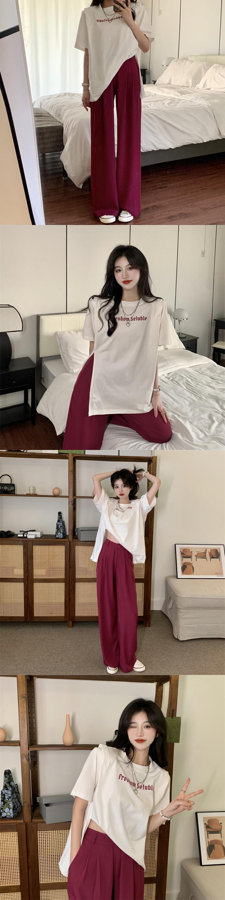 ホワイトスリットTシャツ夏服ルーズ レッド 夏物 SYJ60605027442