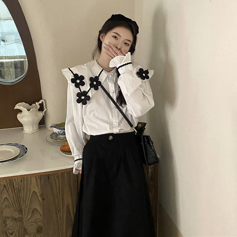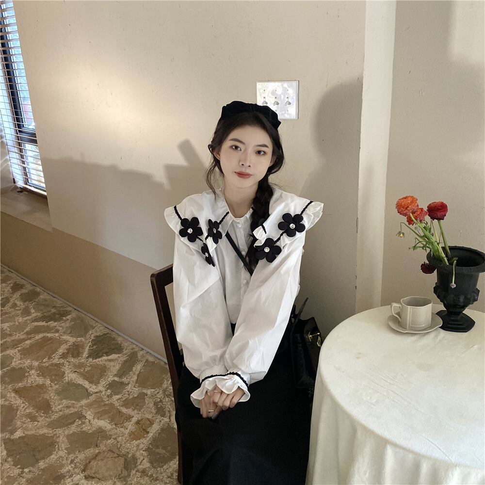 ホワイトカラーFlowerデザイン シャツ スプリング秋物韓国ファッショントップス 春物 オータム フラワーデザイン SYJ66026177878