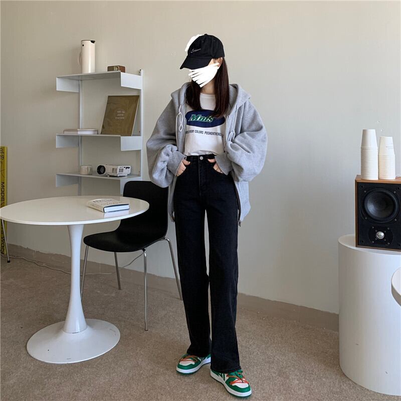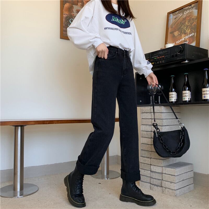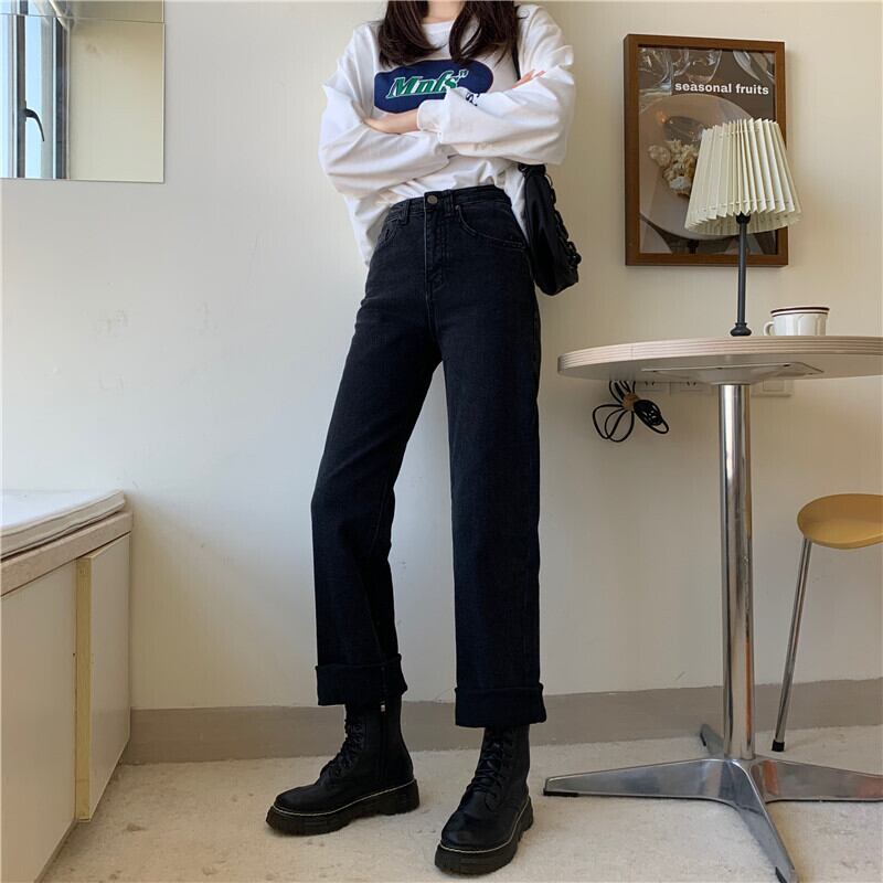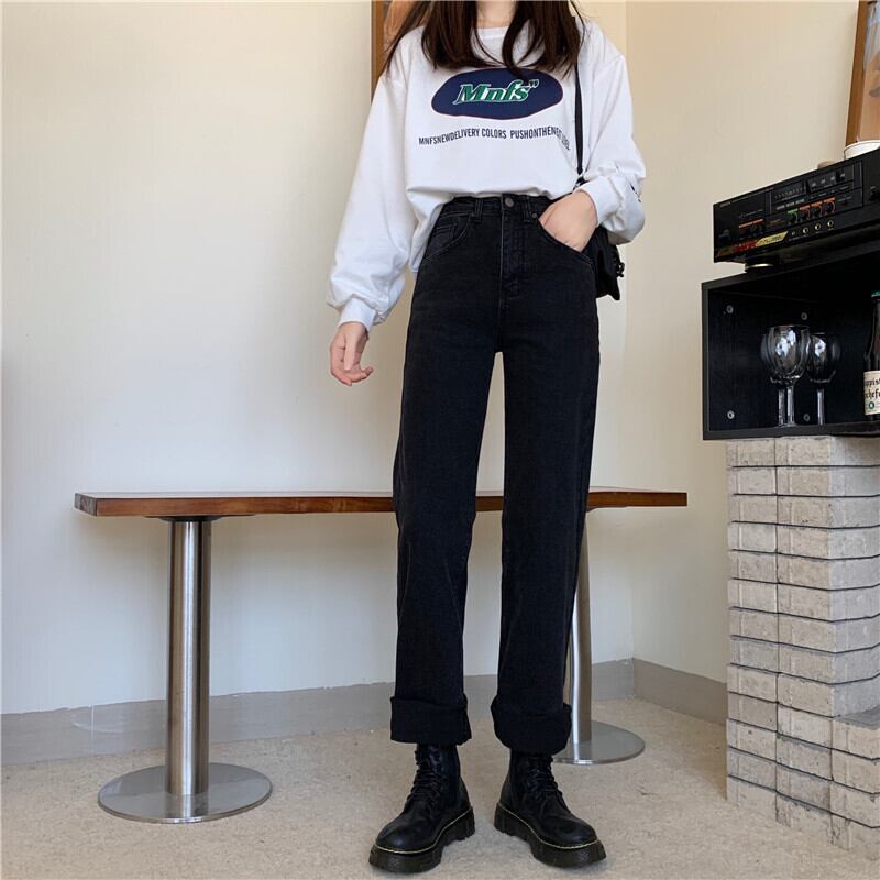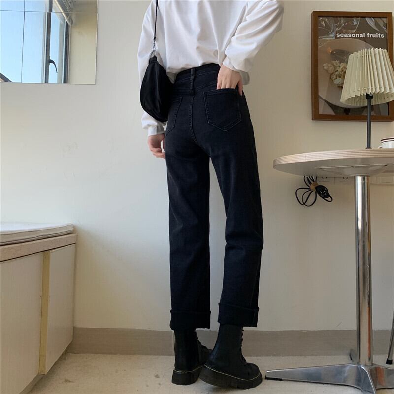 ブラックジーンズ スプリングハイウェストスリムパンツ 春物 ウエスト SYJ47282785743