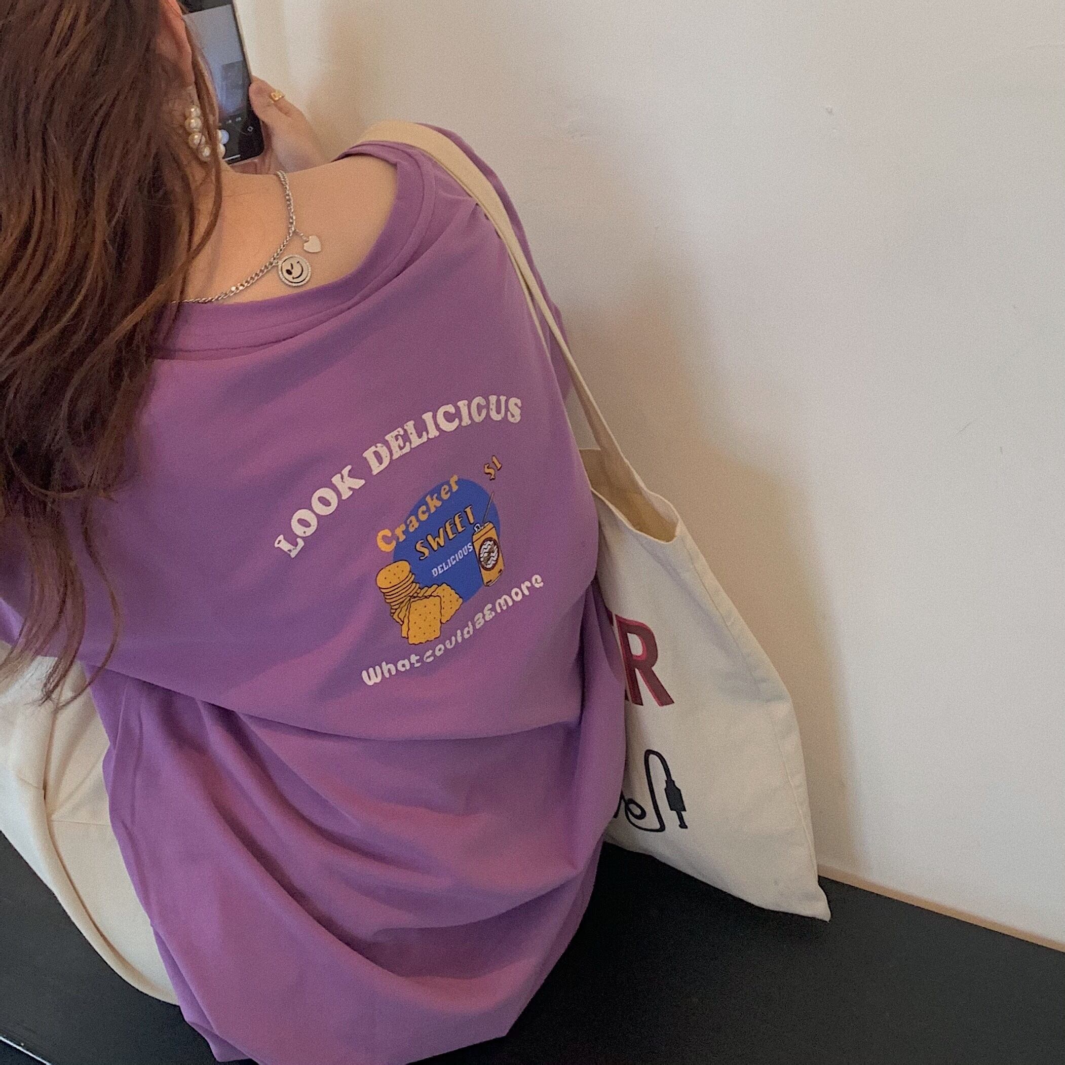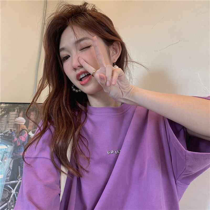 Tシャツ夏服スタイルルーズトップス NEW 夏物 パープル SYJ92828043730