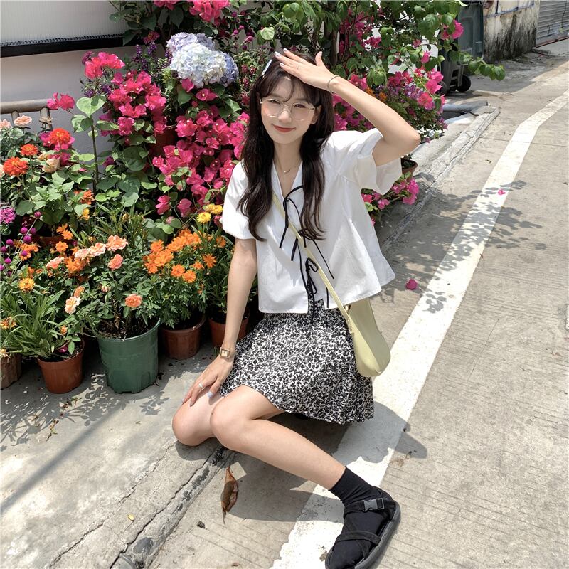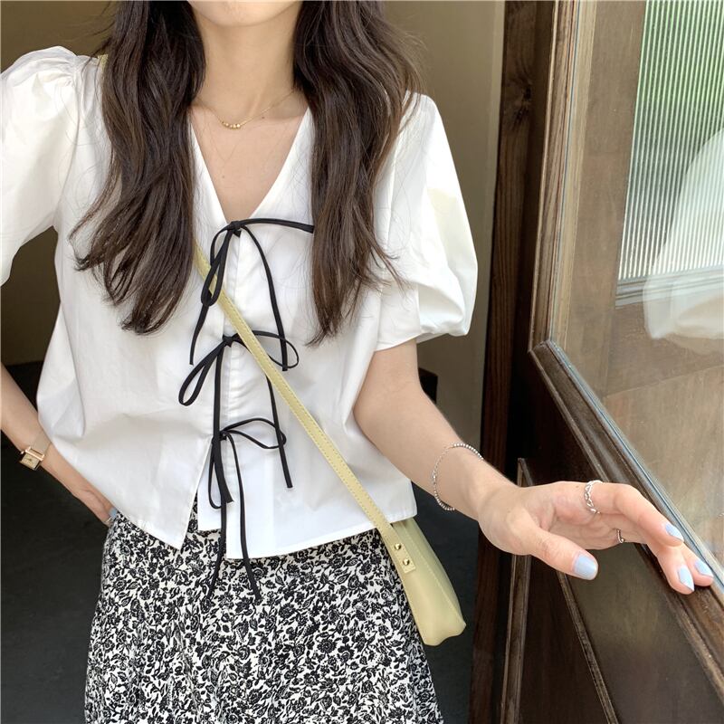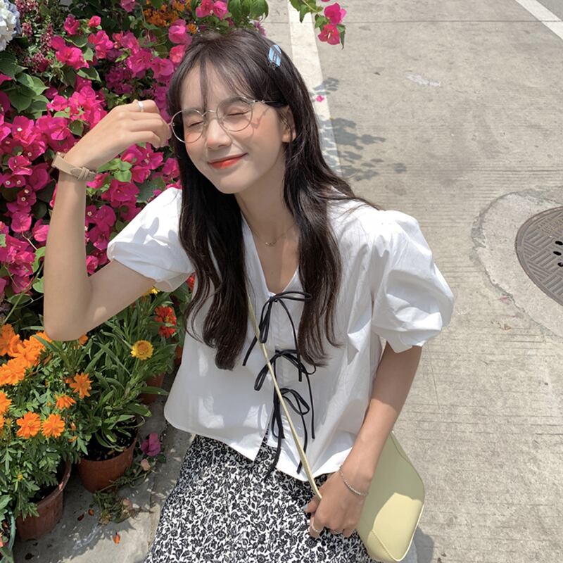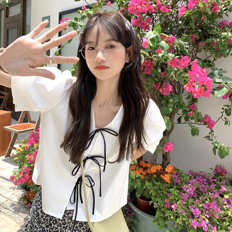 ホワイトスリーブショートシャツ 夏服トップス 大人ガーリー スウィート キュート カジュアル 夏物 SYJ81011064639
