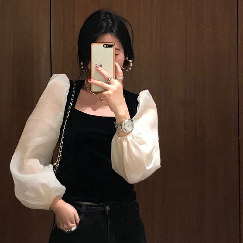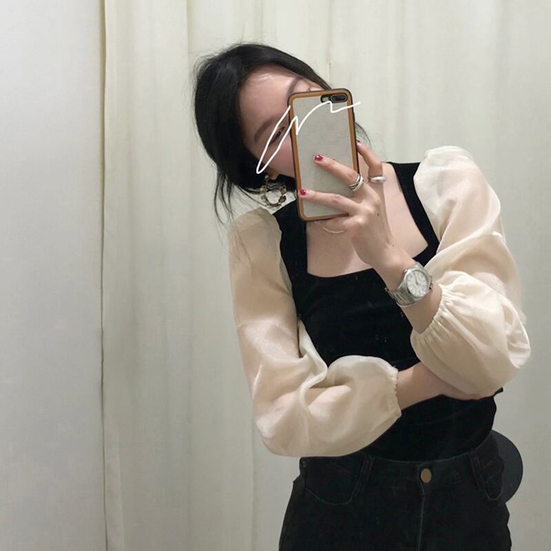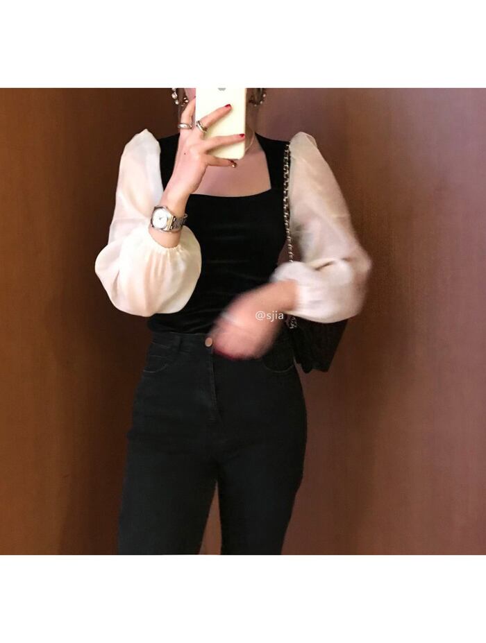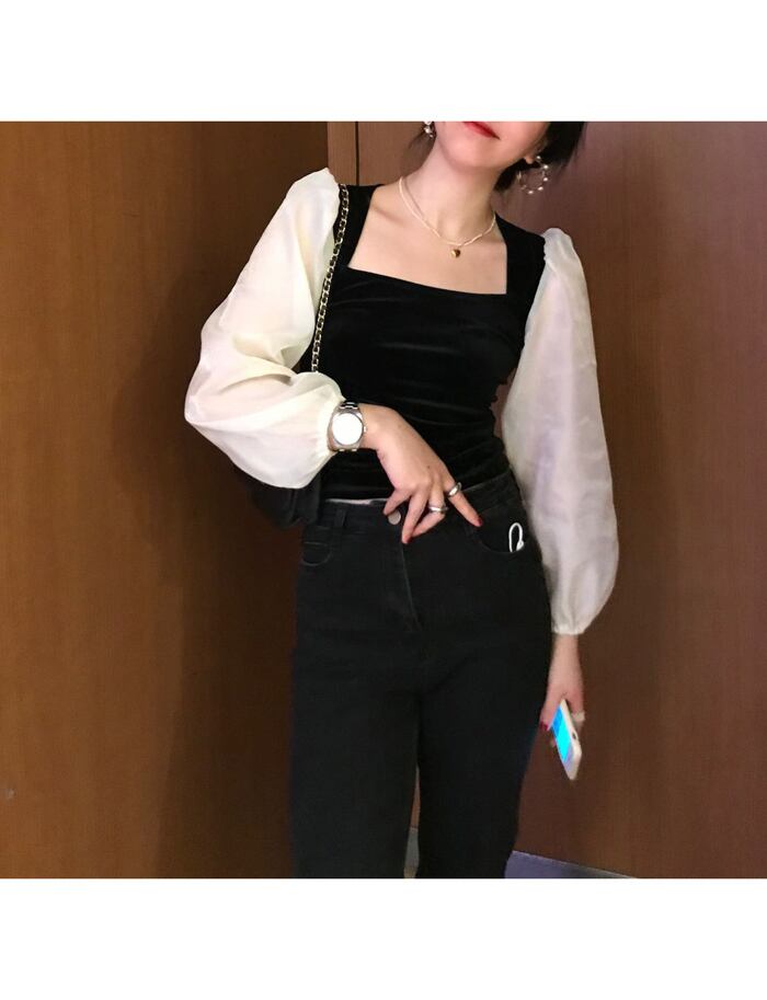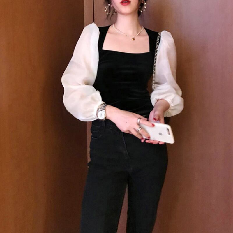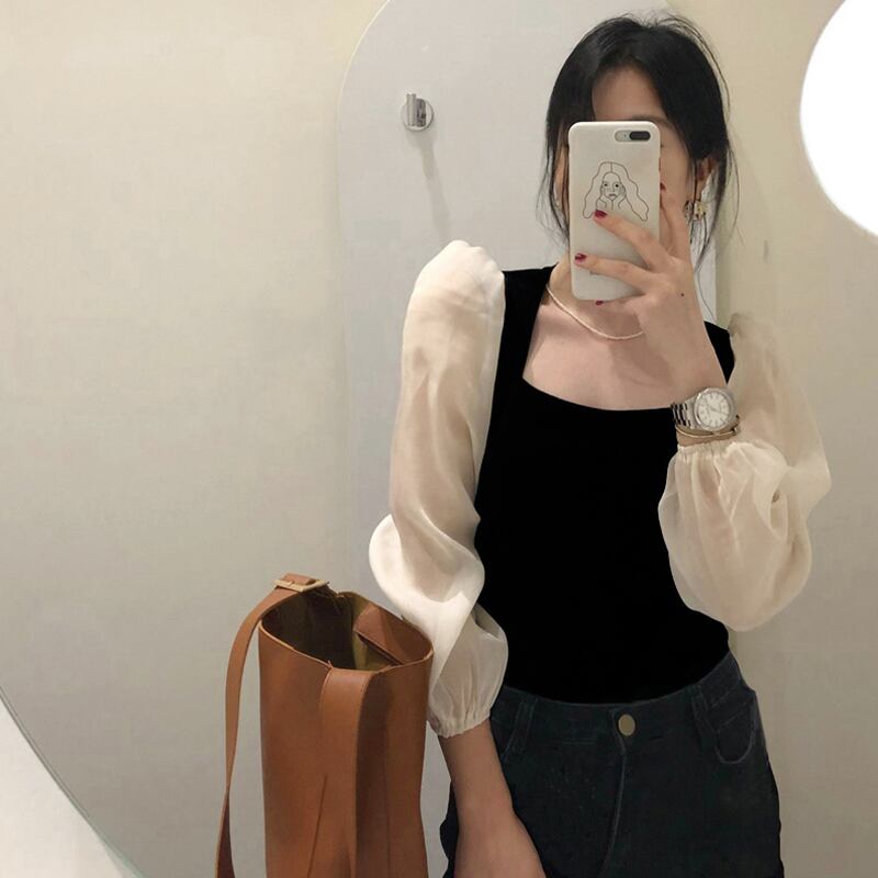スリムフィットカラートップス スプリング秋物長袖スリーブシャツ ロング 大人ガーリー スウィート キュート カジュアル 春物 オータム スクウェア SYJ97054564354