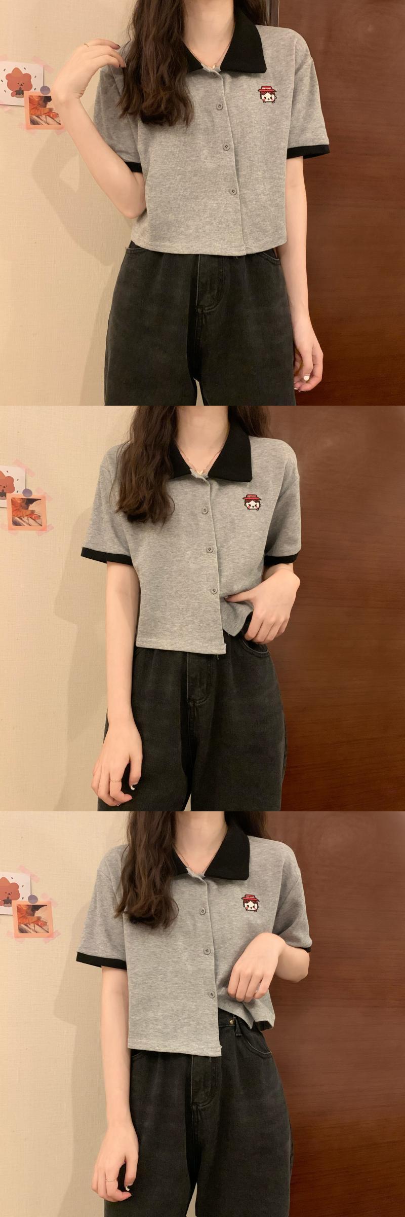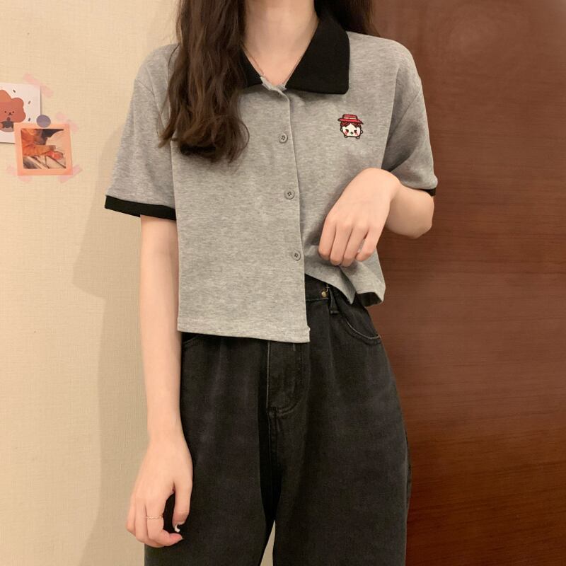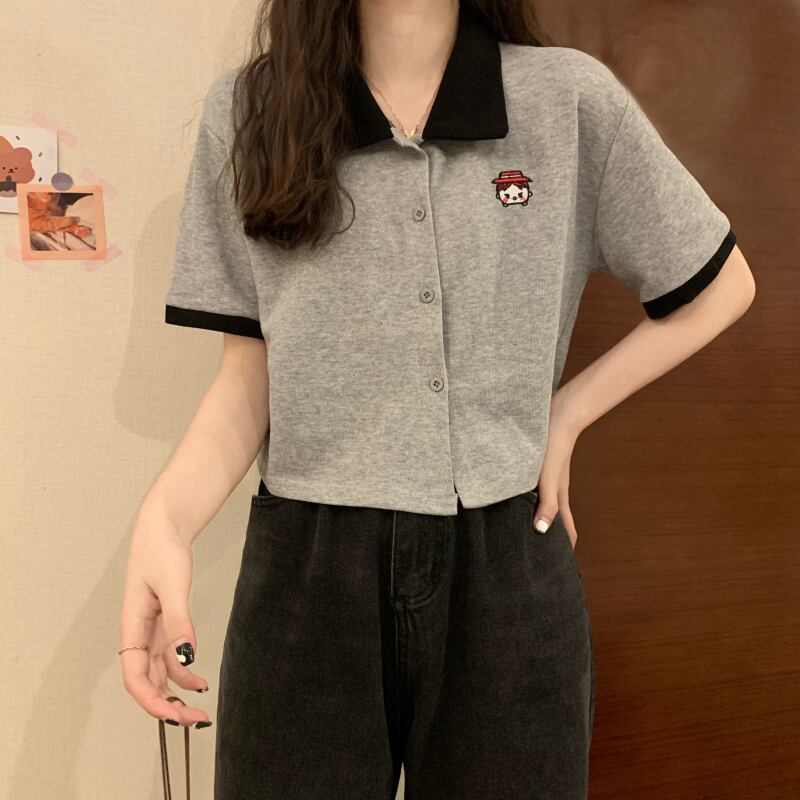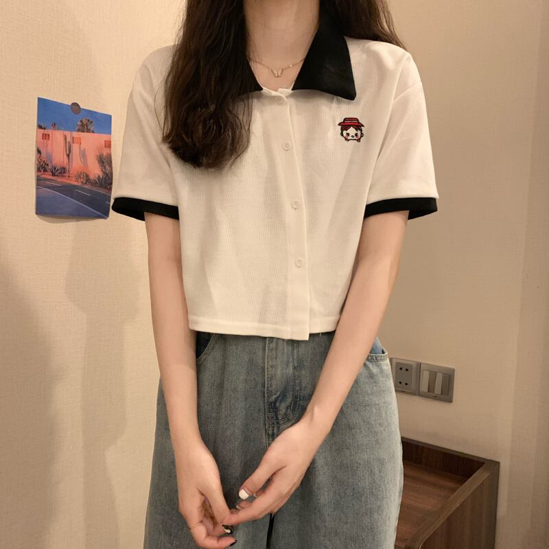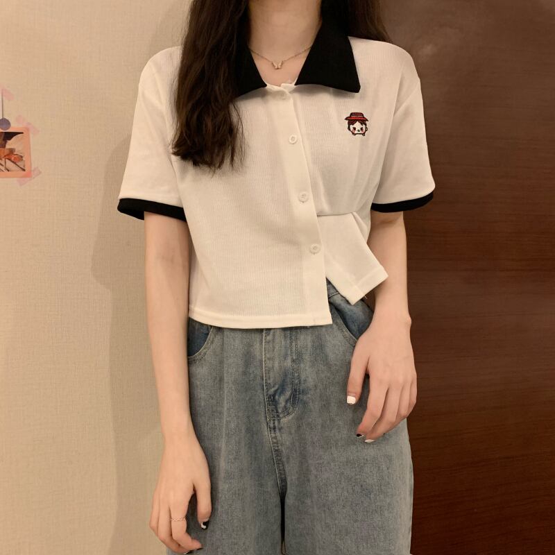 カラー半袖スリーブTシャツ夏服ウェストクロップドトップス ショート ピンク ハーフスリーブ 夏物 ウエスト SYJ29258555927