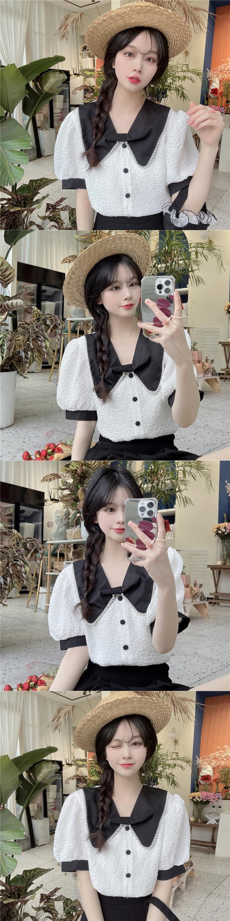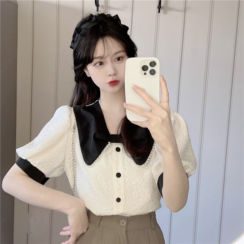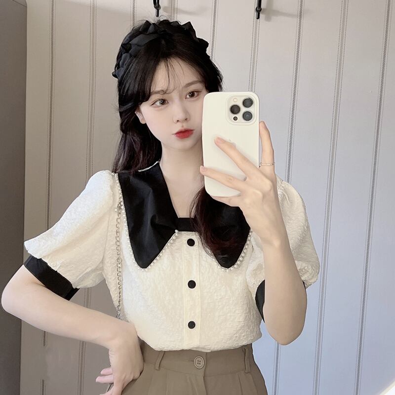 リボンスリーブシャツ 夏服ショートトップス 夏物 SYJ52269333075