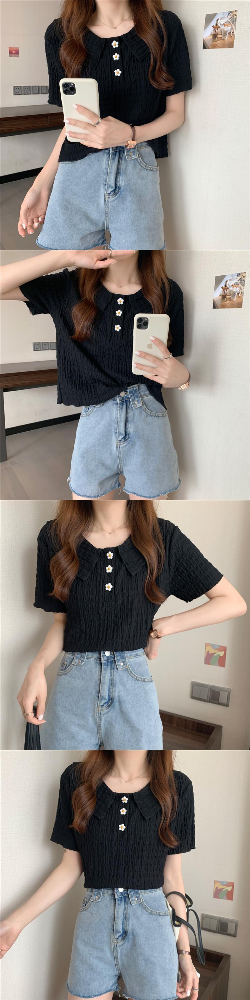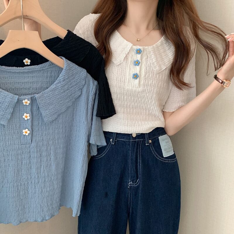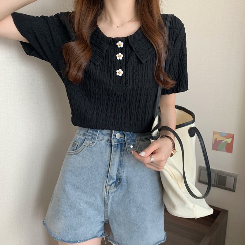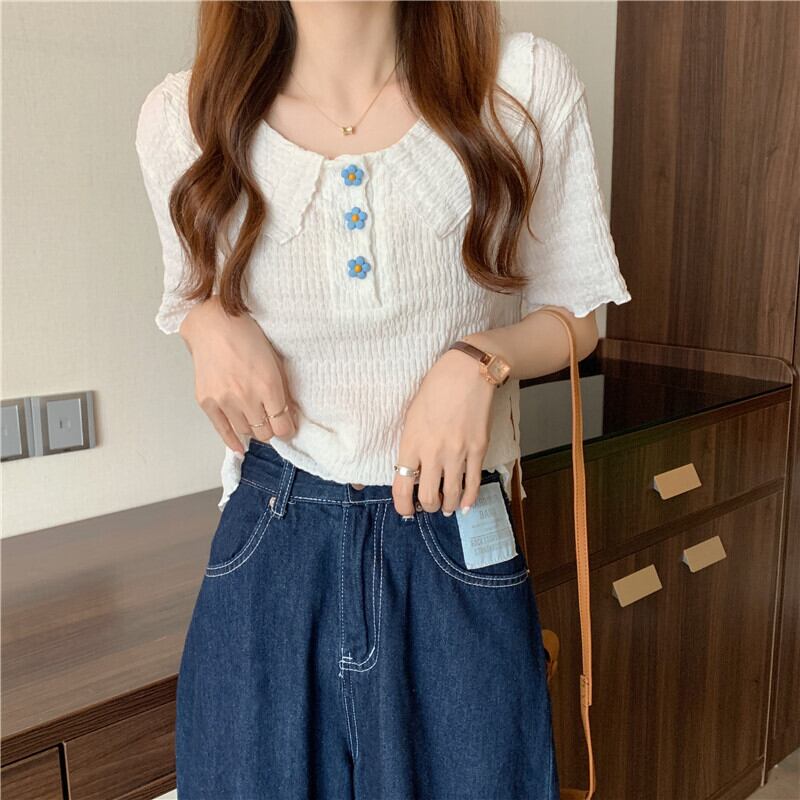 ホワイトショートTシャツシャツ 夏服トップス 大人ガーリー スウィート キュート カジュアル 夏物 SYJ93177496489