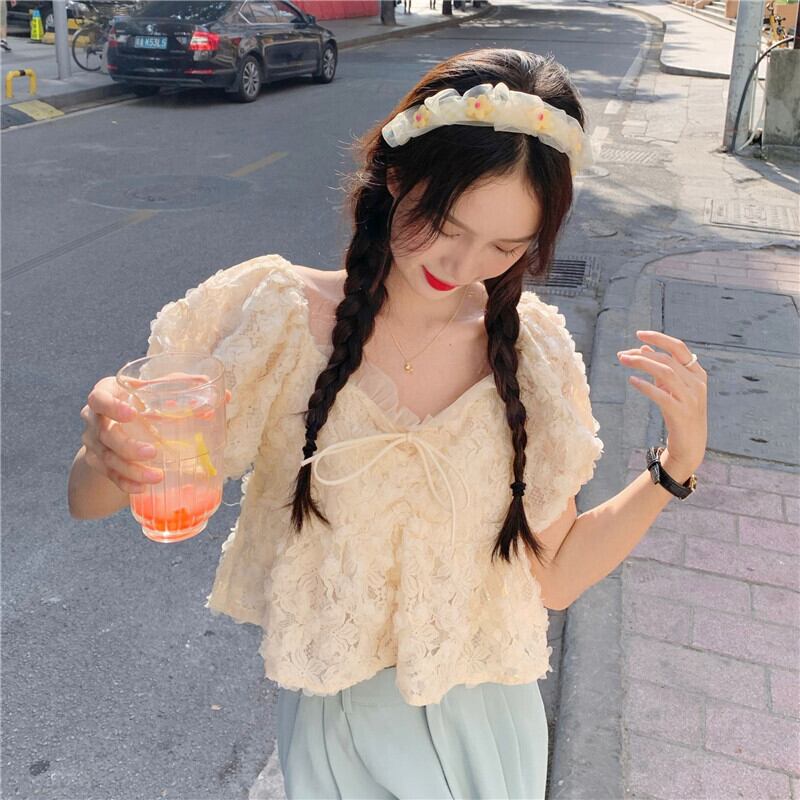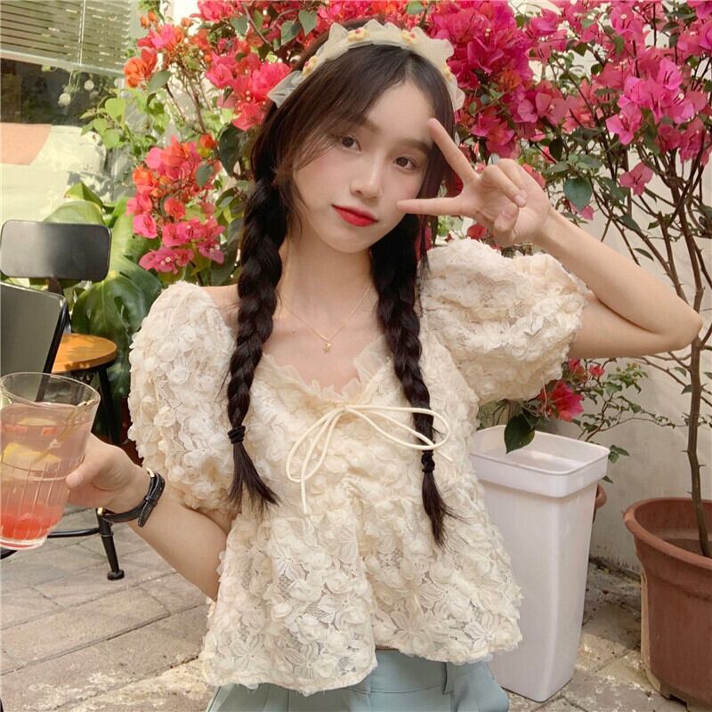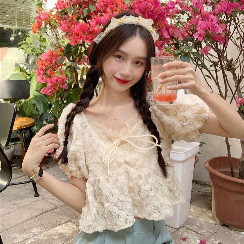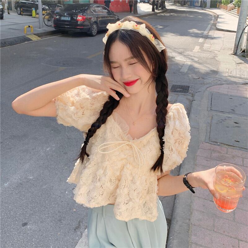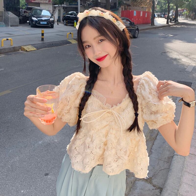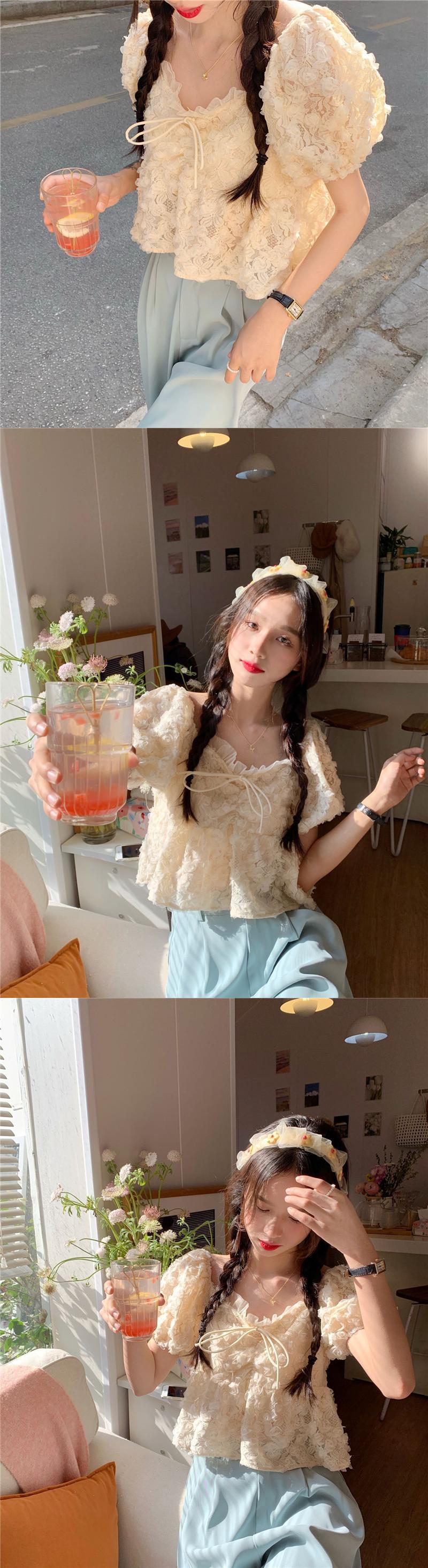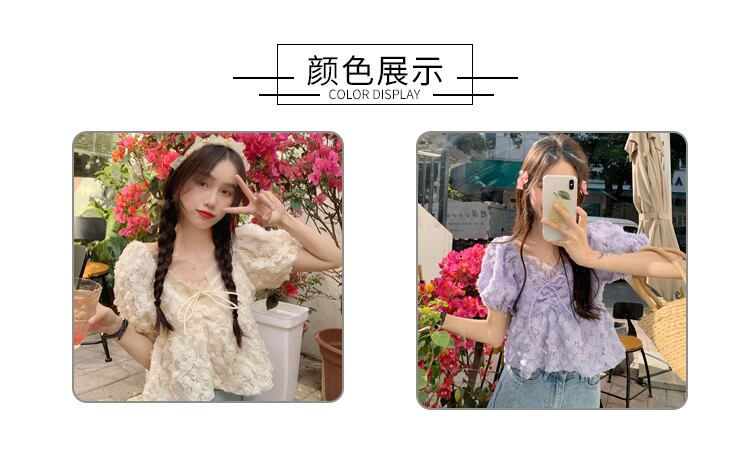 ショートトップス 夏服カラー 夏物 スクウェア パフスリーブ SYJ8068008841
