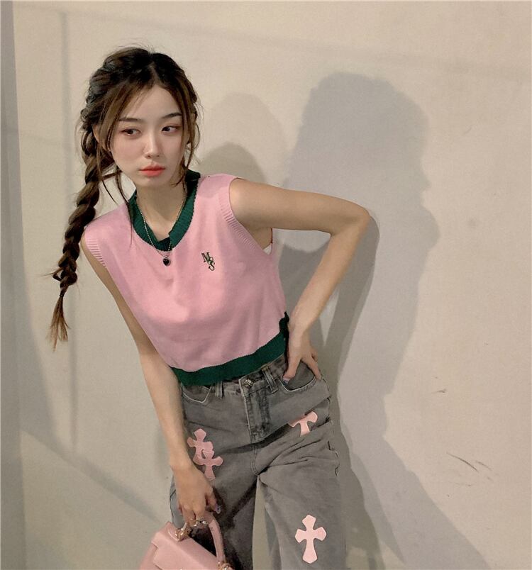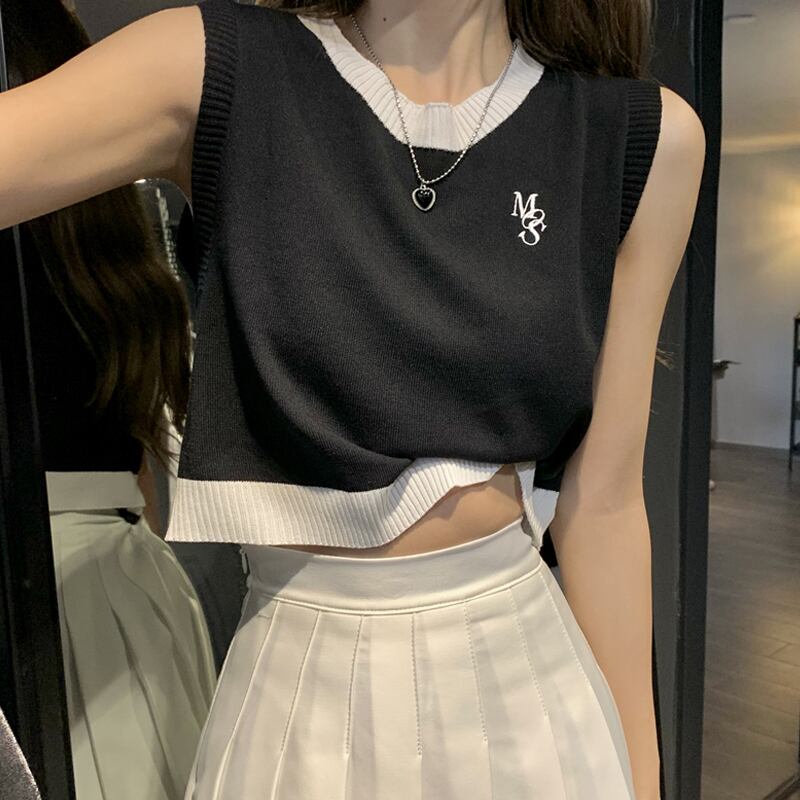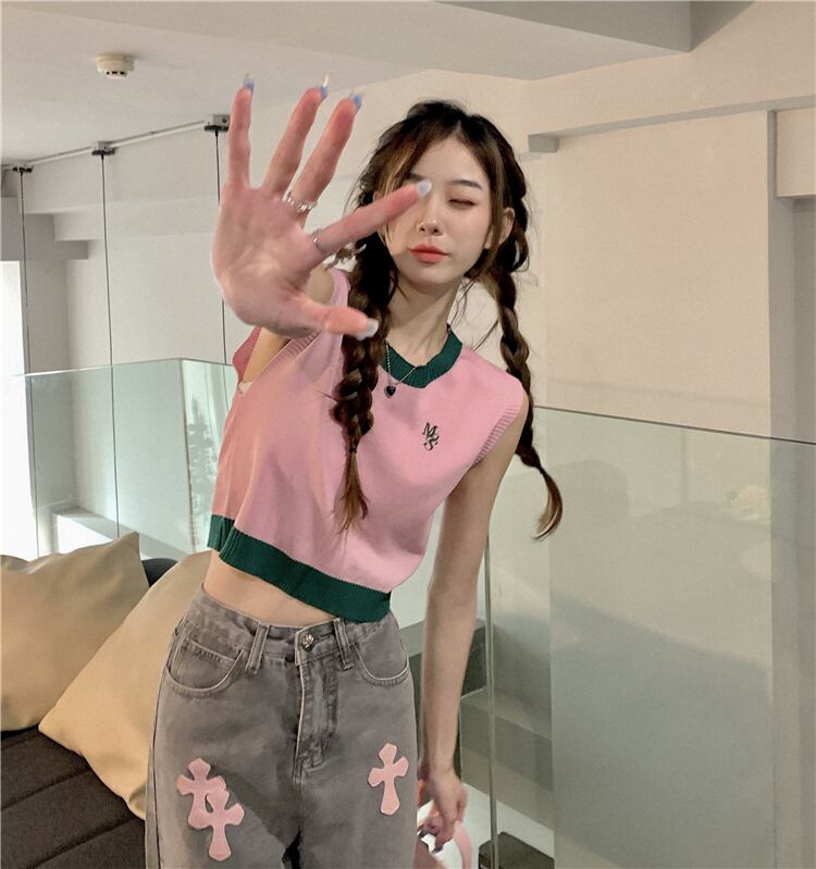 夏服ニットショートトップス ノースリーブTシャツNEW 大人ガーリー スウィート キュート カジュアル 夏物 SYJ76816046652