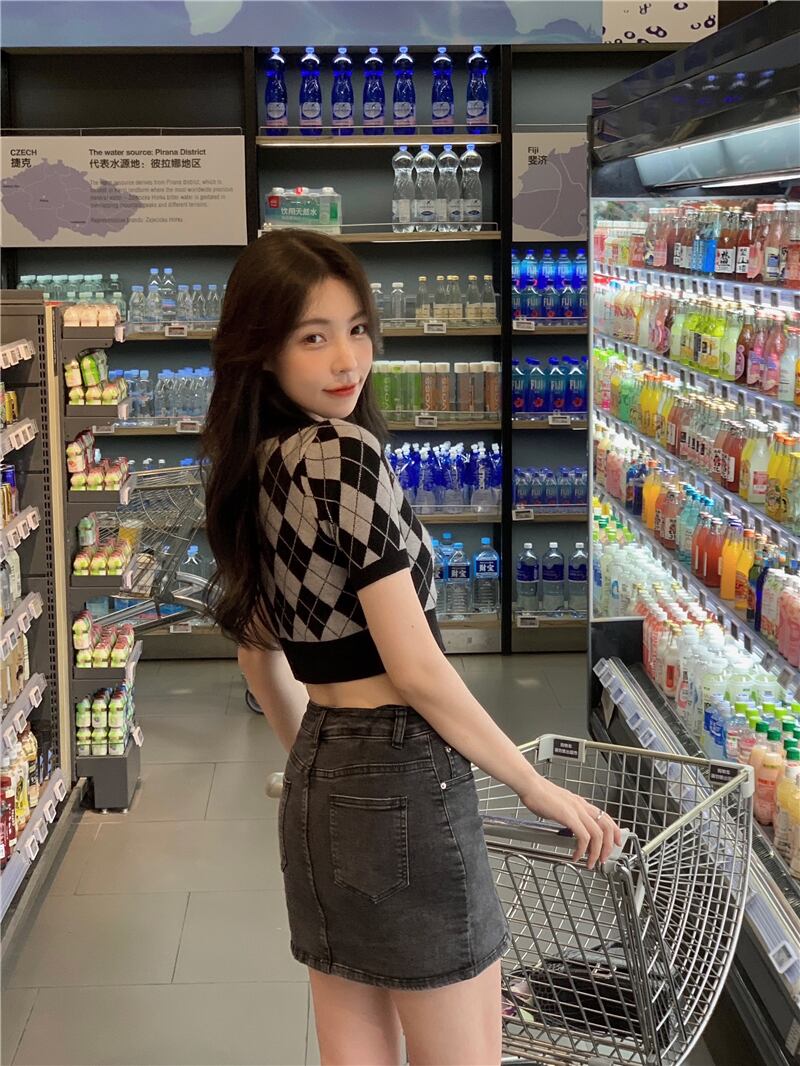色:ワンピースダイヤモンドニットセーター,黒スカートワンピース