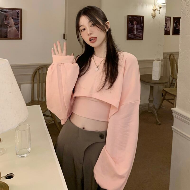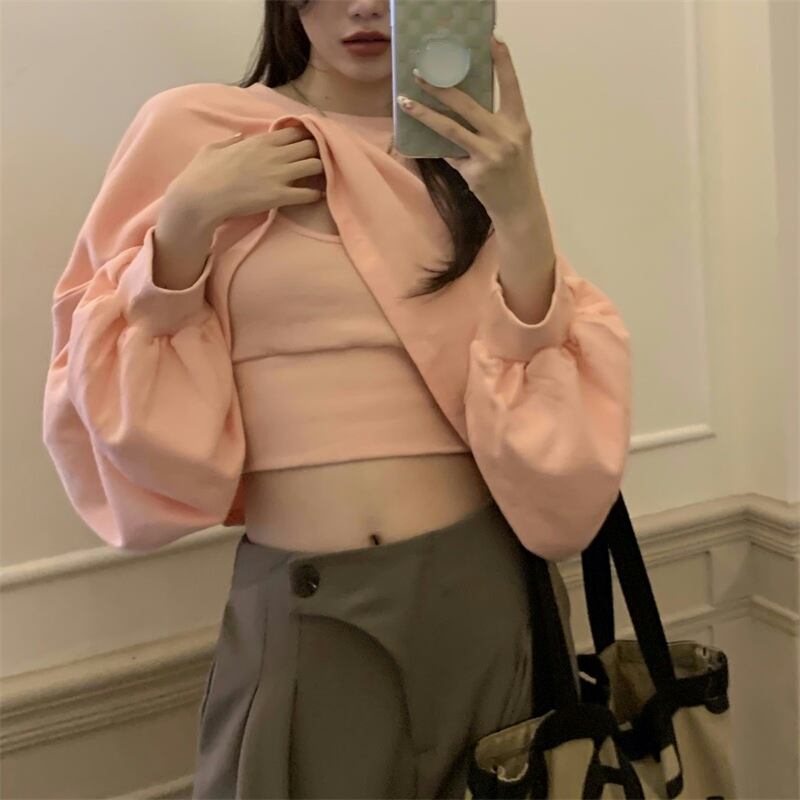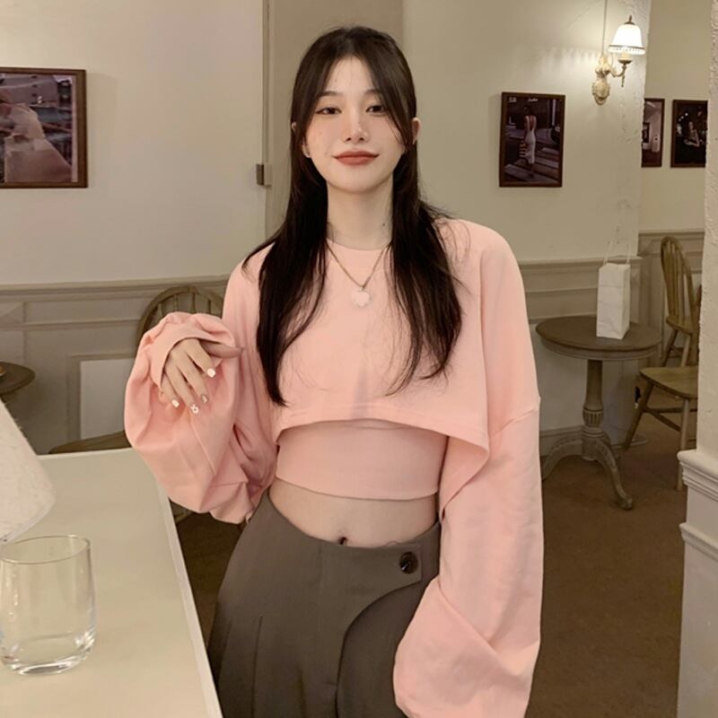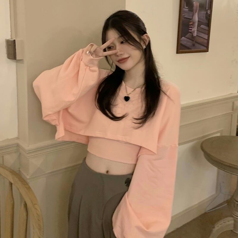ショートセーター スプリング秋物薄手スタイルトップス ピンク 大人ガーリー スウィート キュート カジュアル 春物 オータム SYJ54084380541