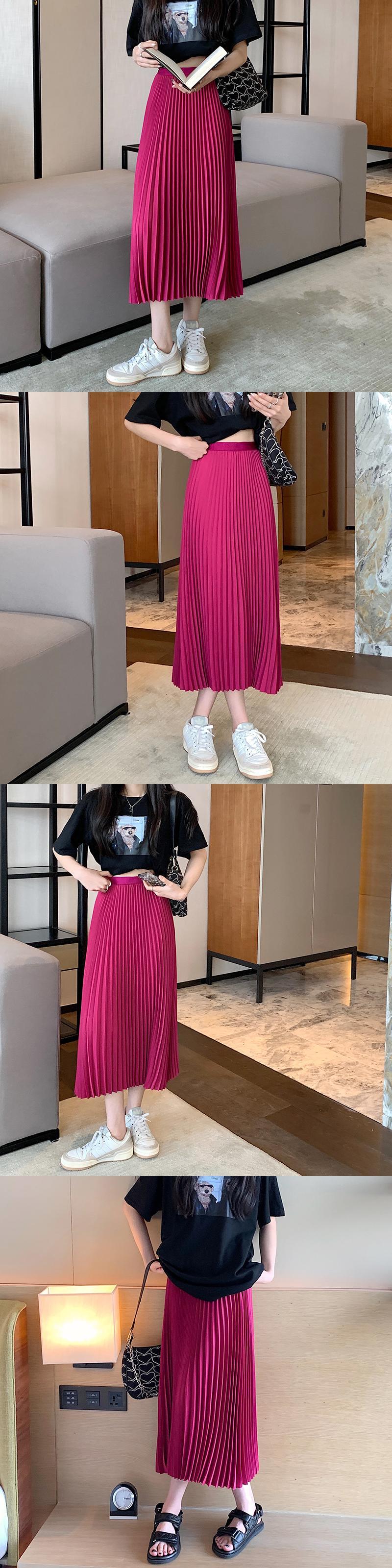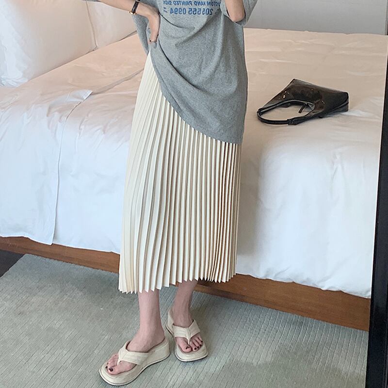 プリーツスカート 夏服ハイウェストウェストAラインロング 夏物 ウエスト ミドル丈 SYJ95300944113