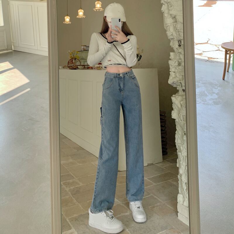 ブルージーンズ スプリングハイウェスト薄手パンツ スタンダード レトロ 春物 ウエスト SYJ74575398540