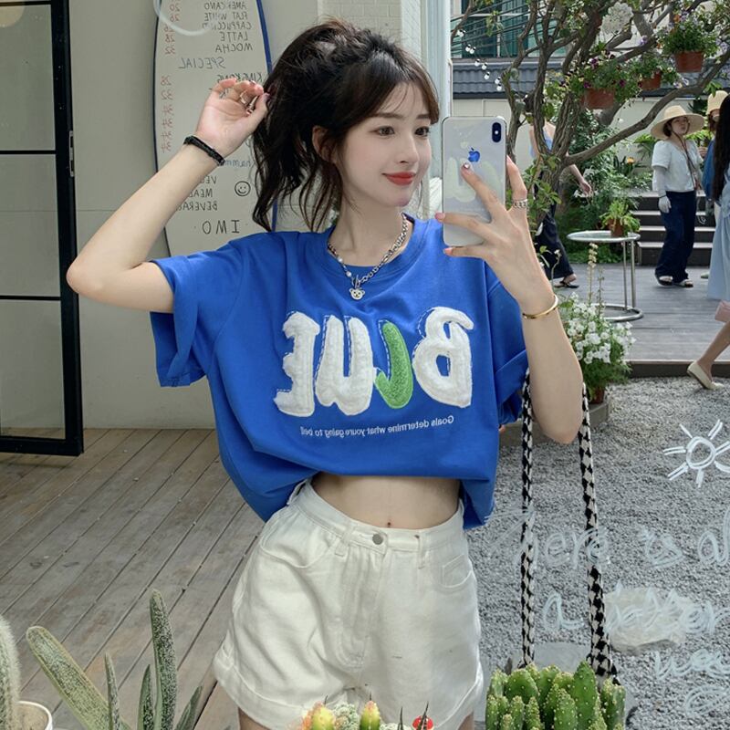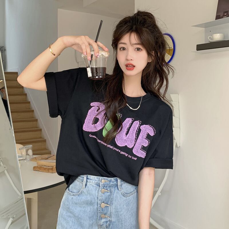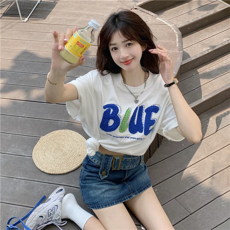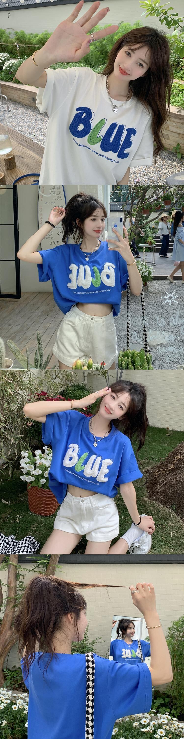 ブルーTシャツ夏服ルーズオーバーサイズトップス NEW コットン 夏物 SYJ70621940184