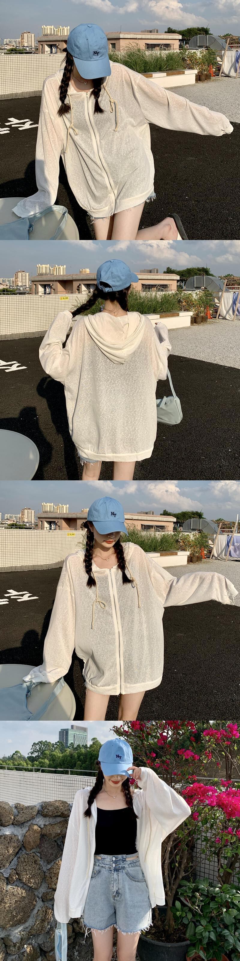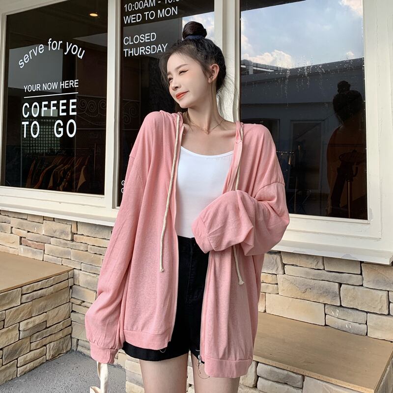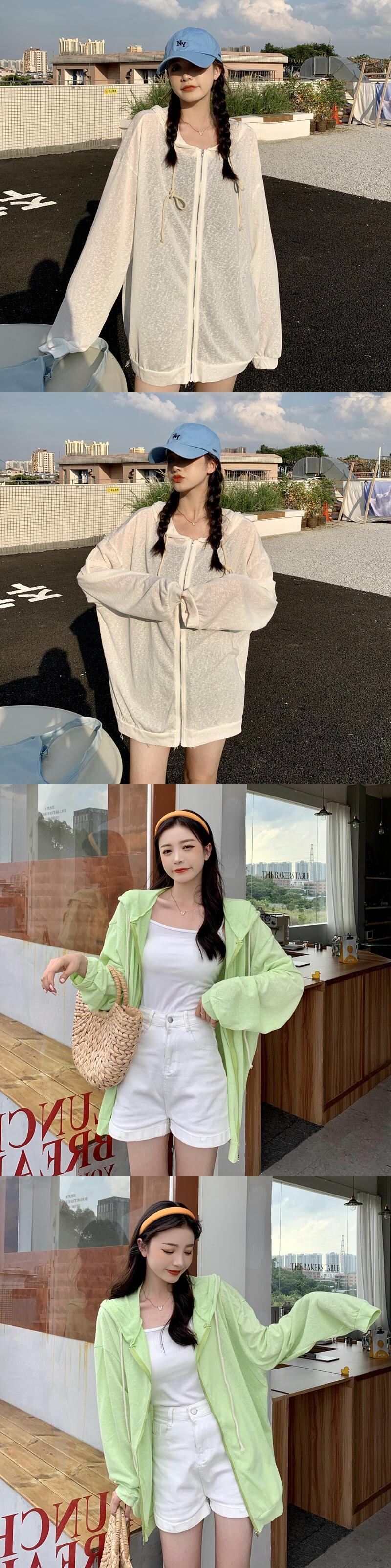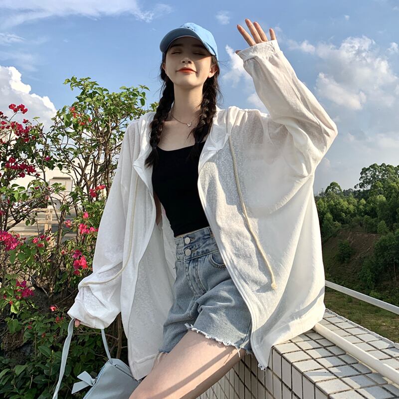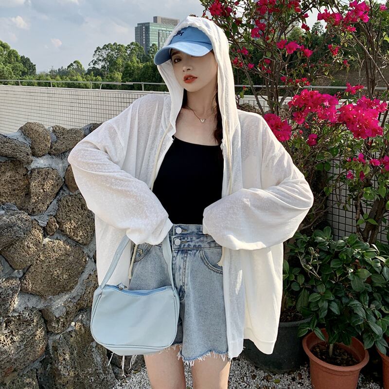ホワイト薄手フードコート スプリング秋物ルーズトップス 春物 オータム SYJ18988743006