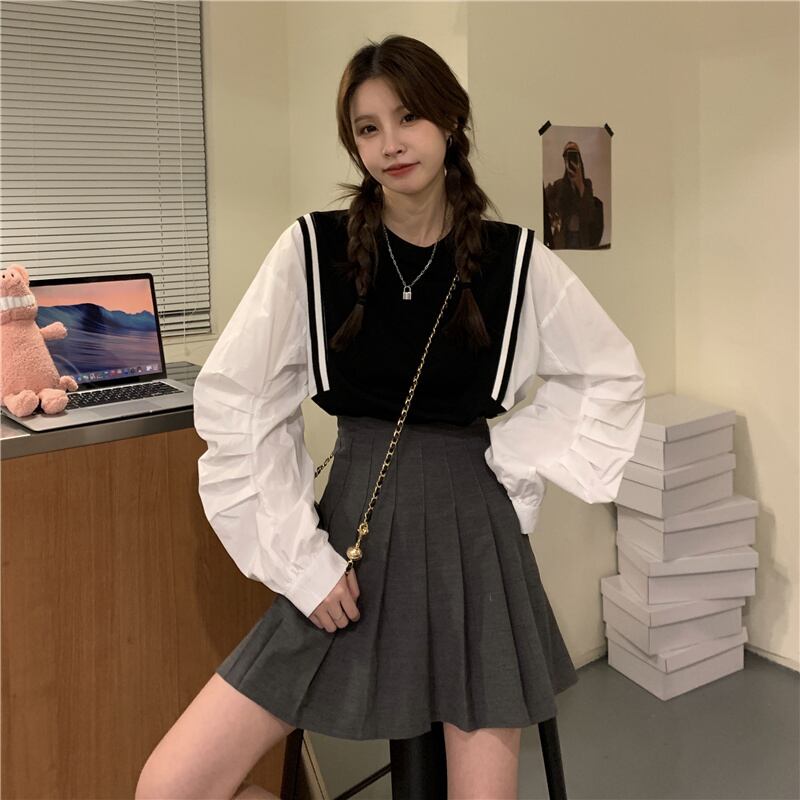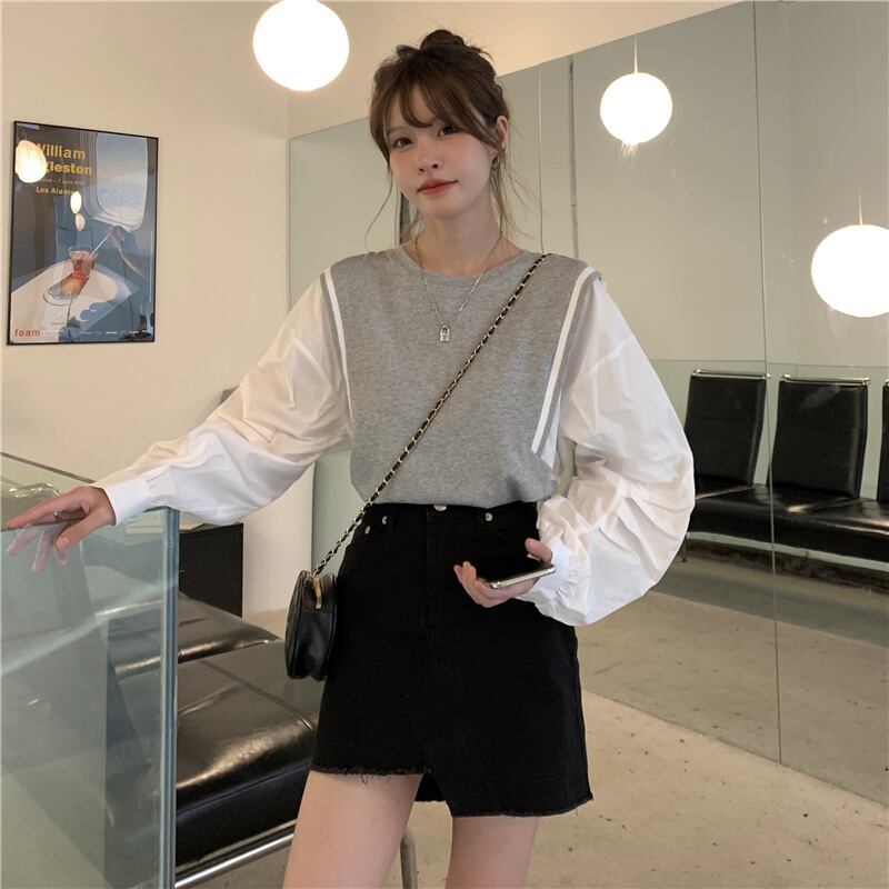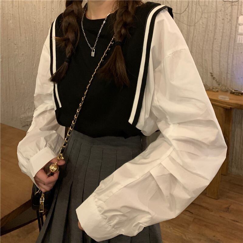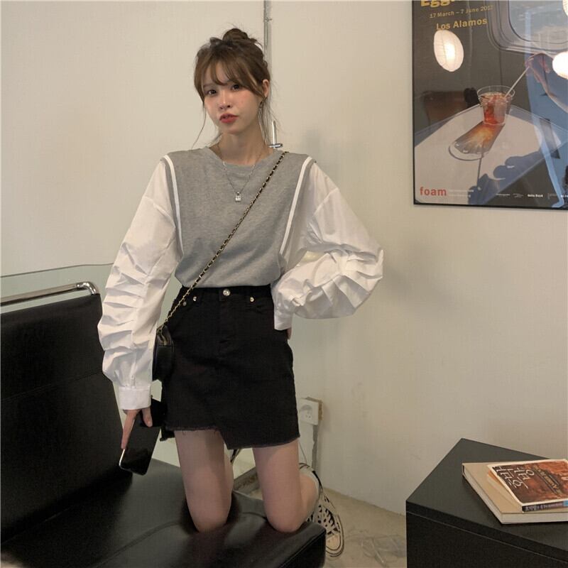 ブラックシャツ スプリングスタンダードトップス ロング レトロ 春物 長袖 SYJ93406651318