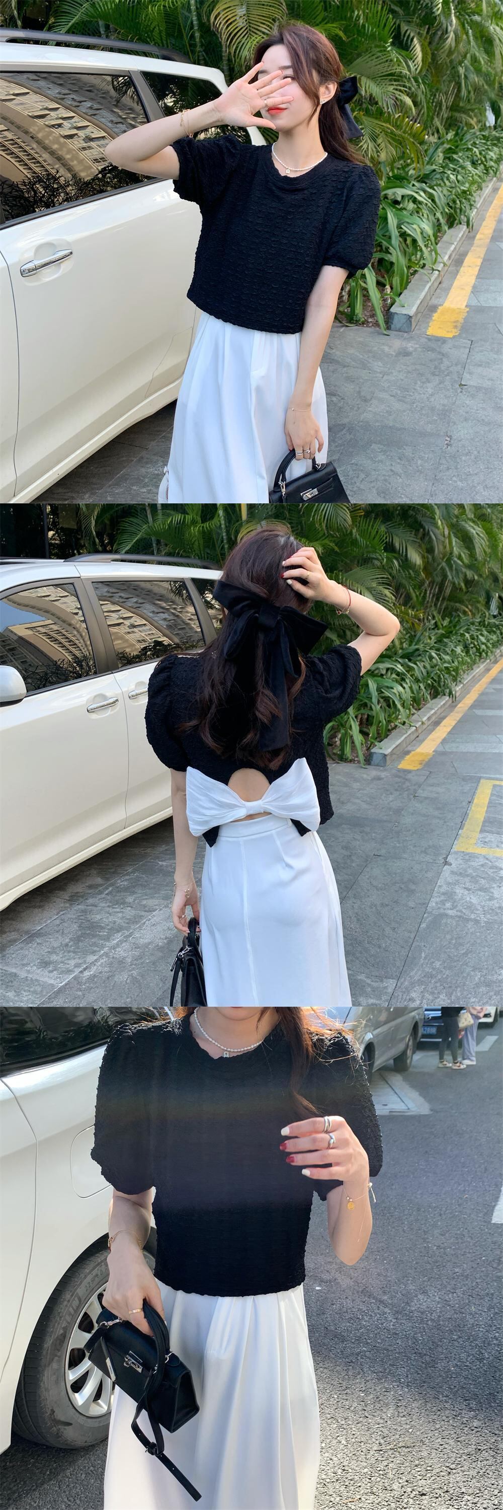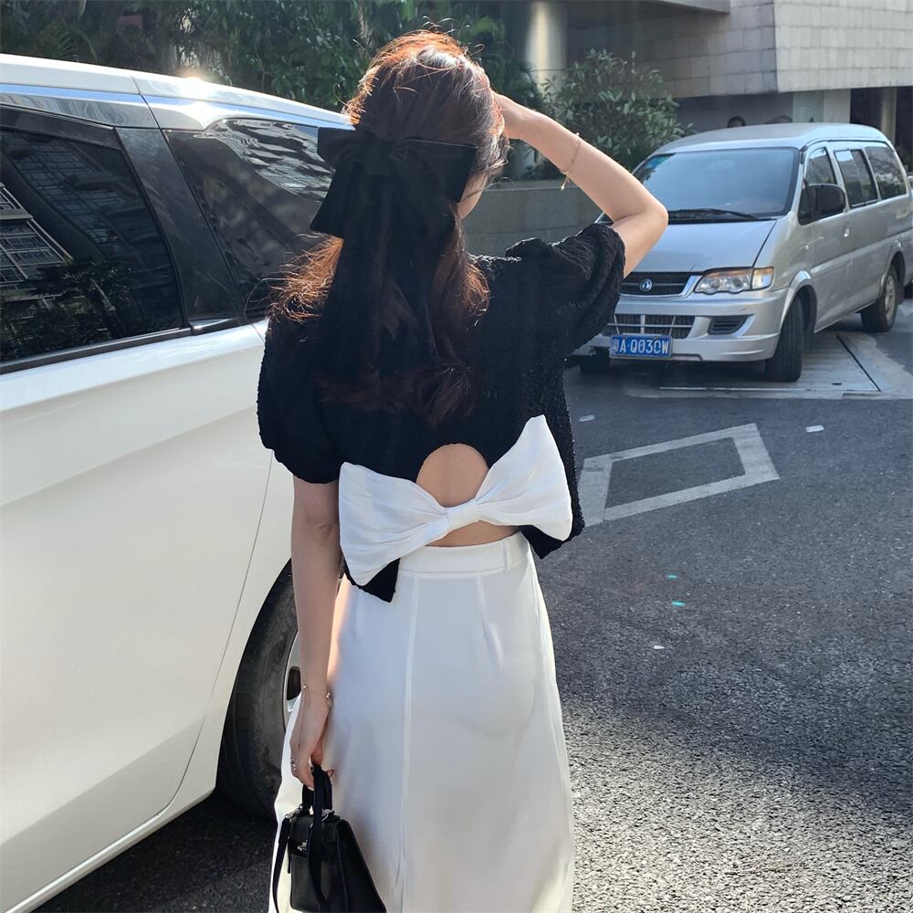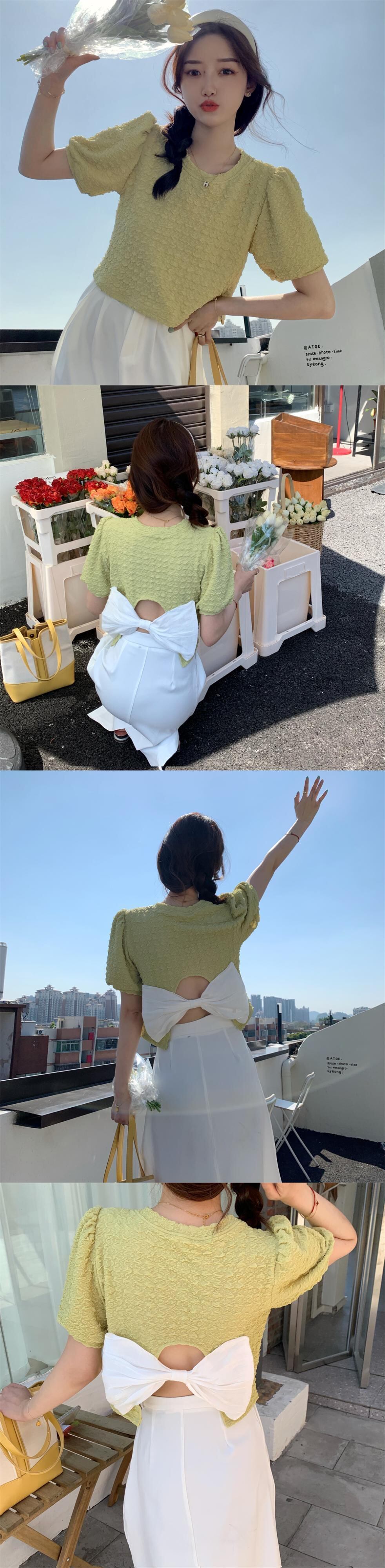 リボンスリーブシャツ 夏服ショートトップス 夏物 SYJ57189540176