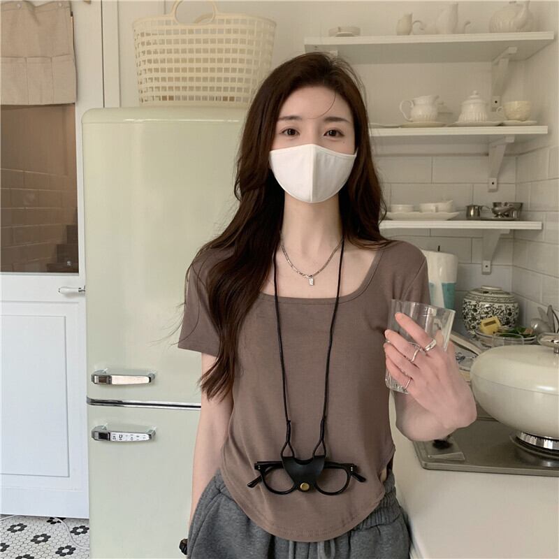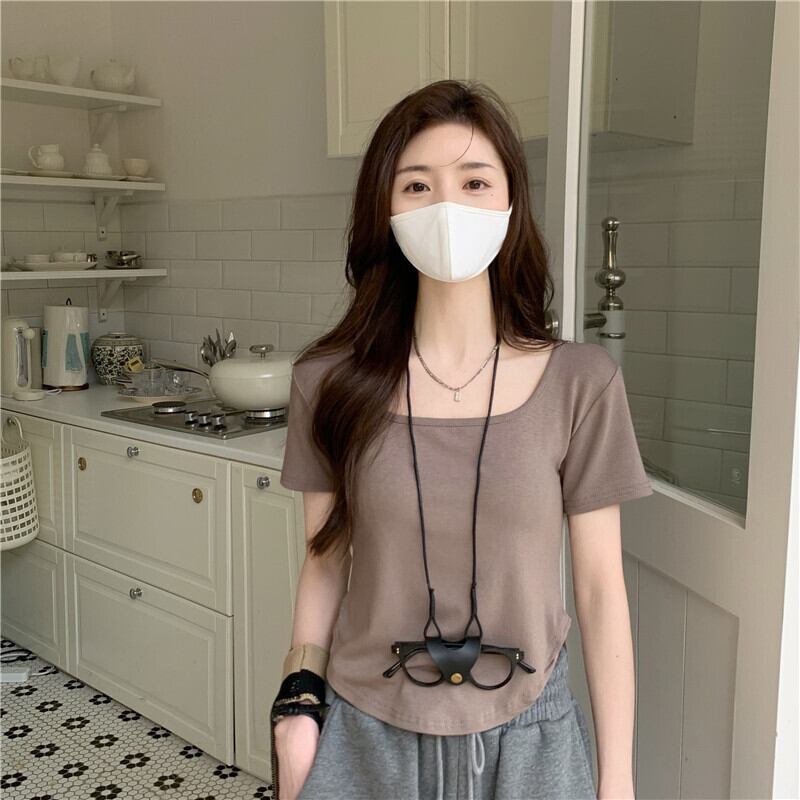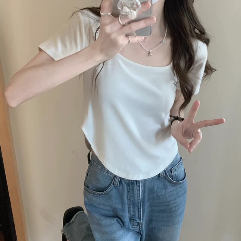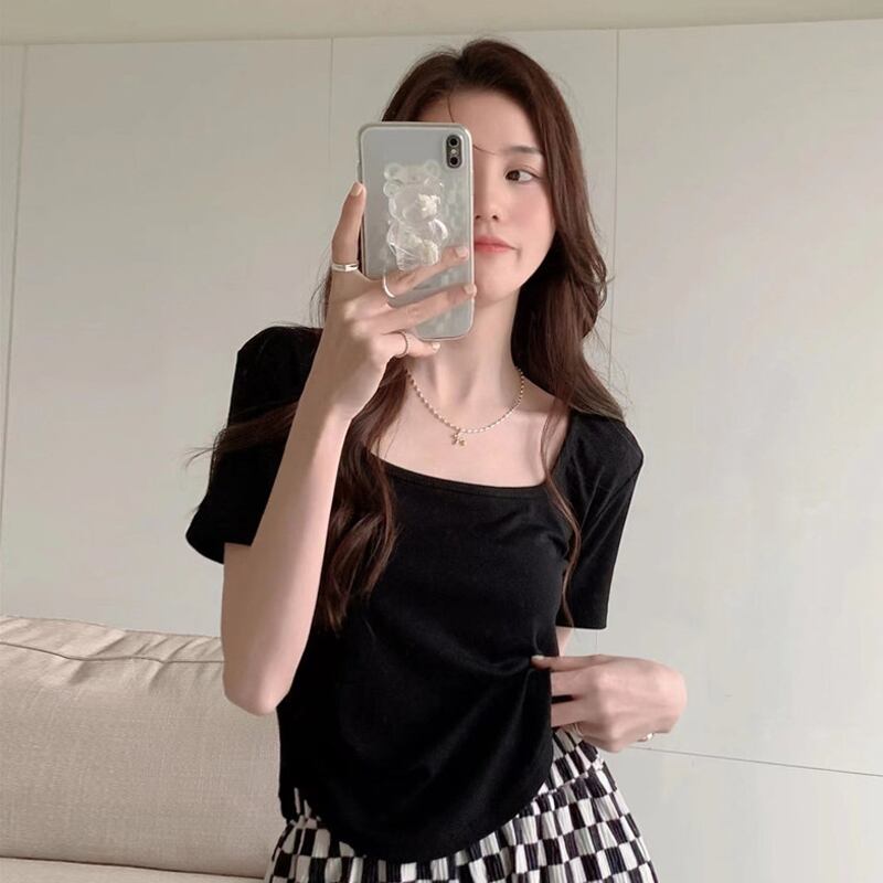 ホワイトショートTシャツ夏服トップス NEW 大人ガーリー スウィート キュート カジュアル 夏物 スクウェア SYJ24814254420