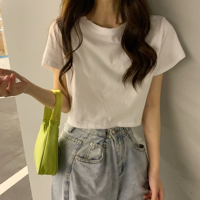 ホワイトショートTシャツ夏服クロップドトップス NEW 大人ガーリー スウィート キュート カジュアル 夏物 SYJ47442456000