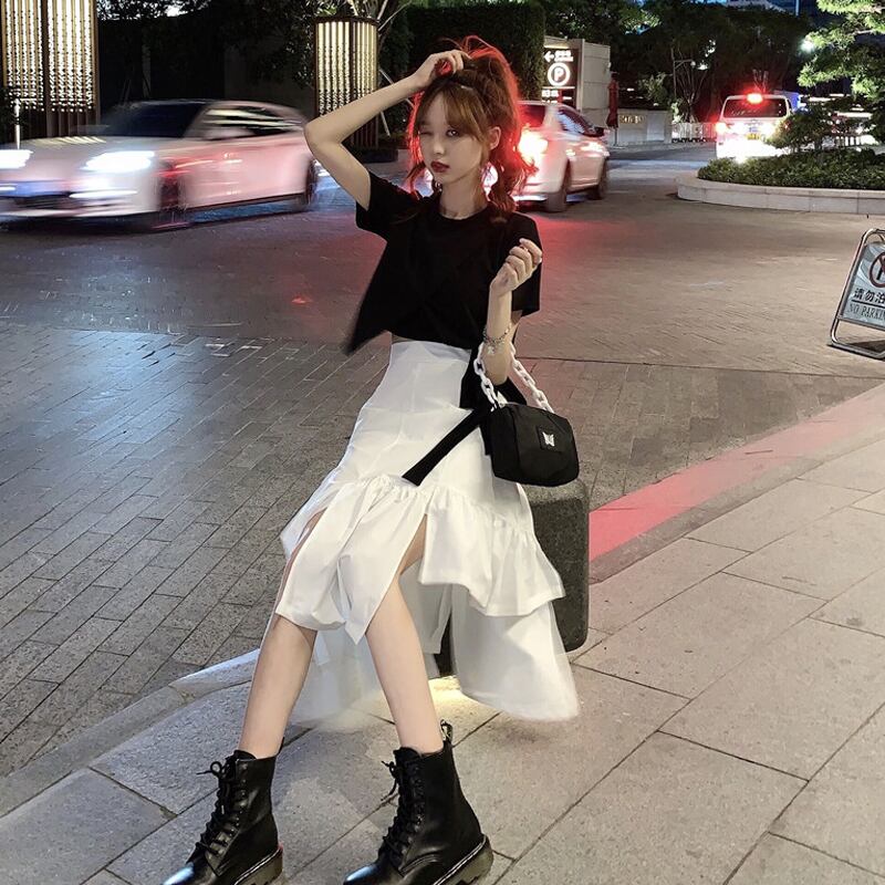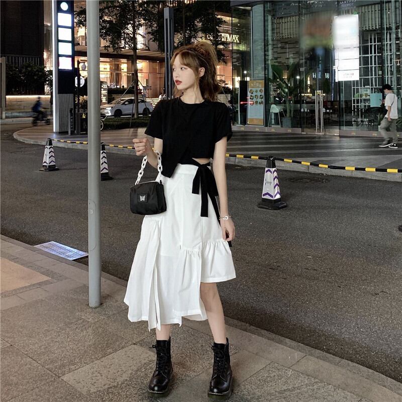 色:ブラックトップシングルピース,白いスカートワンピース