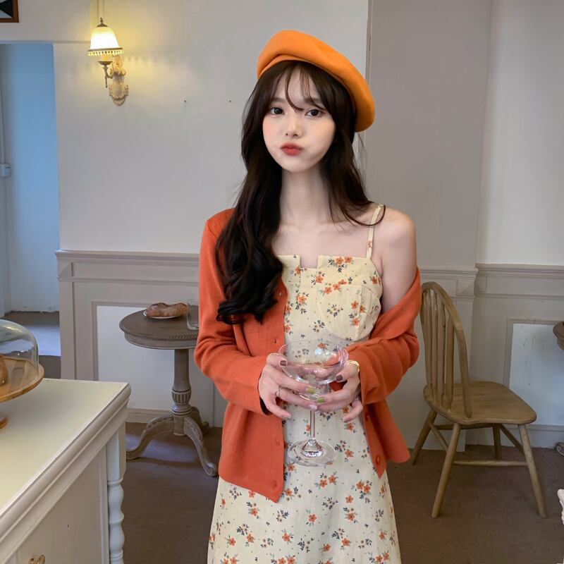 色:ブラックサスペンダードレスワンピース,ワンピースアプリコットサスペンダースカート,ブラックカーディガンワンピース,オレンジカーディガンワンピース