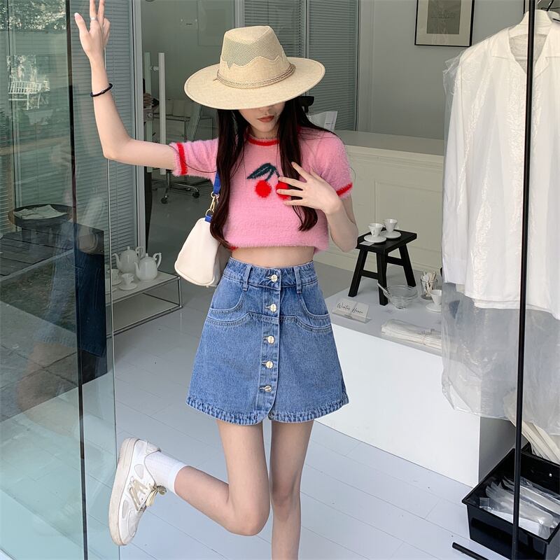 スカート 夏服ハイウェストウェストAラインショート 夏物 ウエスト SYJ86037419327