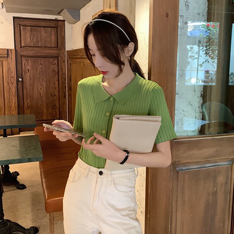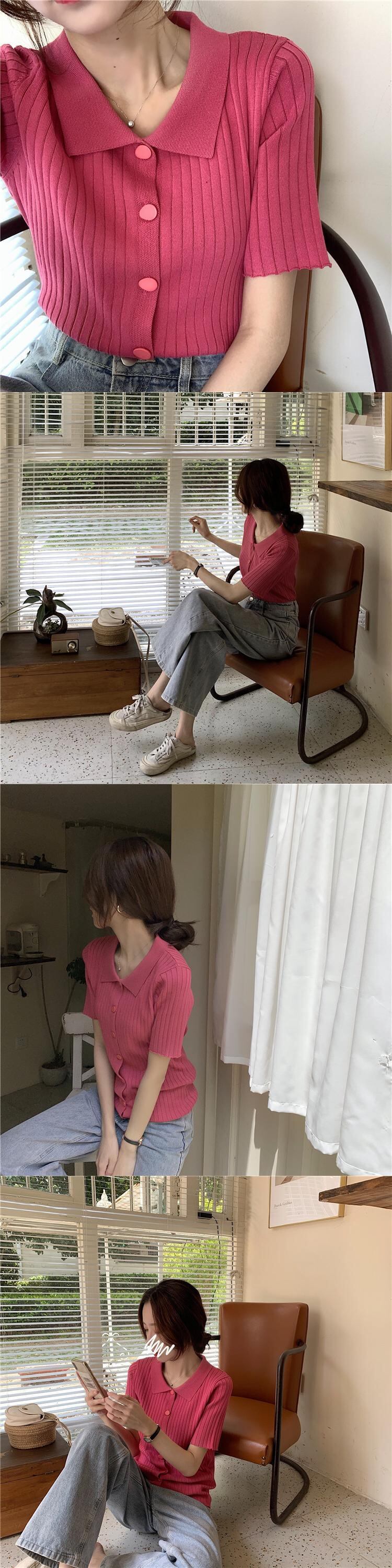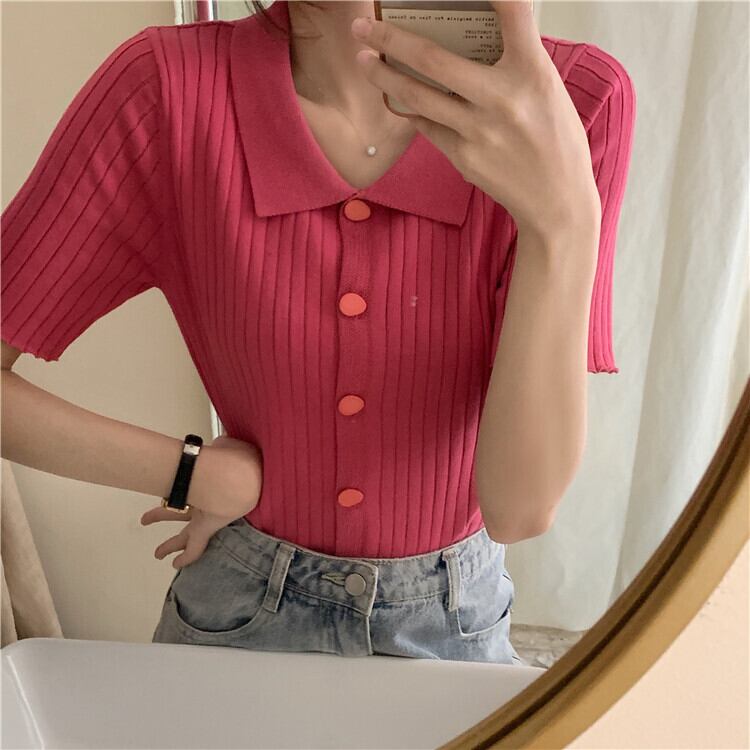 カラーニットセーター 夏服スタンダード ピンク レトロ 夏物 SYJ73492260297