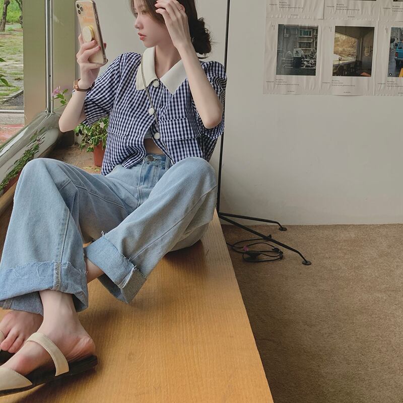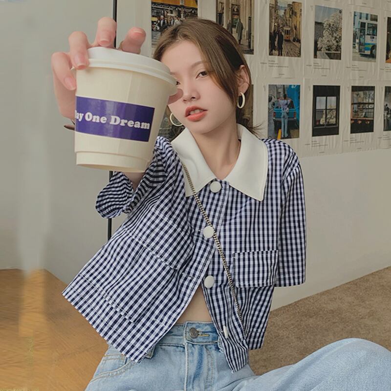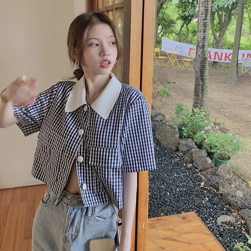 格子柄ショートシャツ 夏服スタイルトップス 夏物 SYJ72934833581