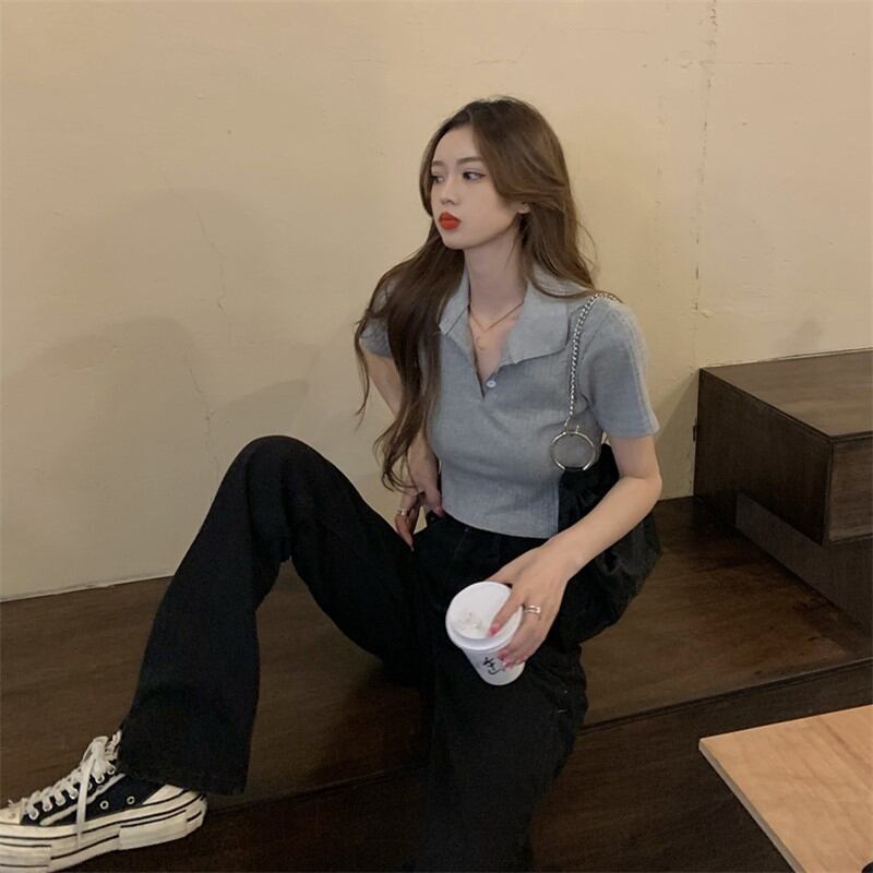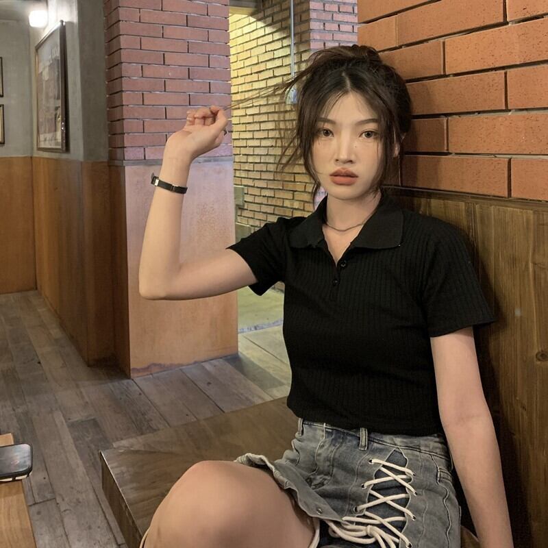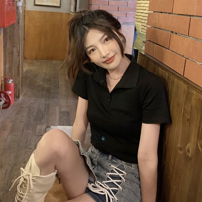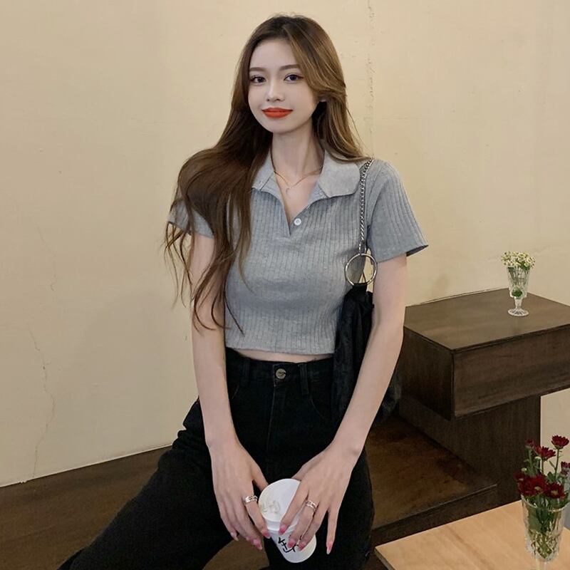 ホワイトショートTシャツ夏服スリムフィットクロップドトップス 夏物 SYJ96913508618