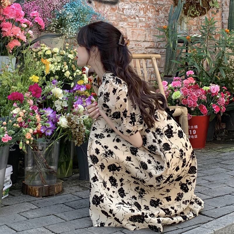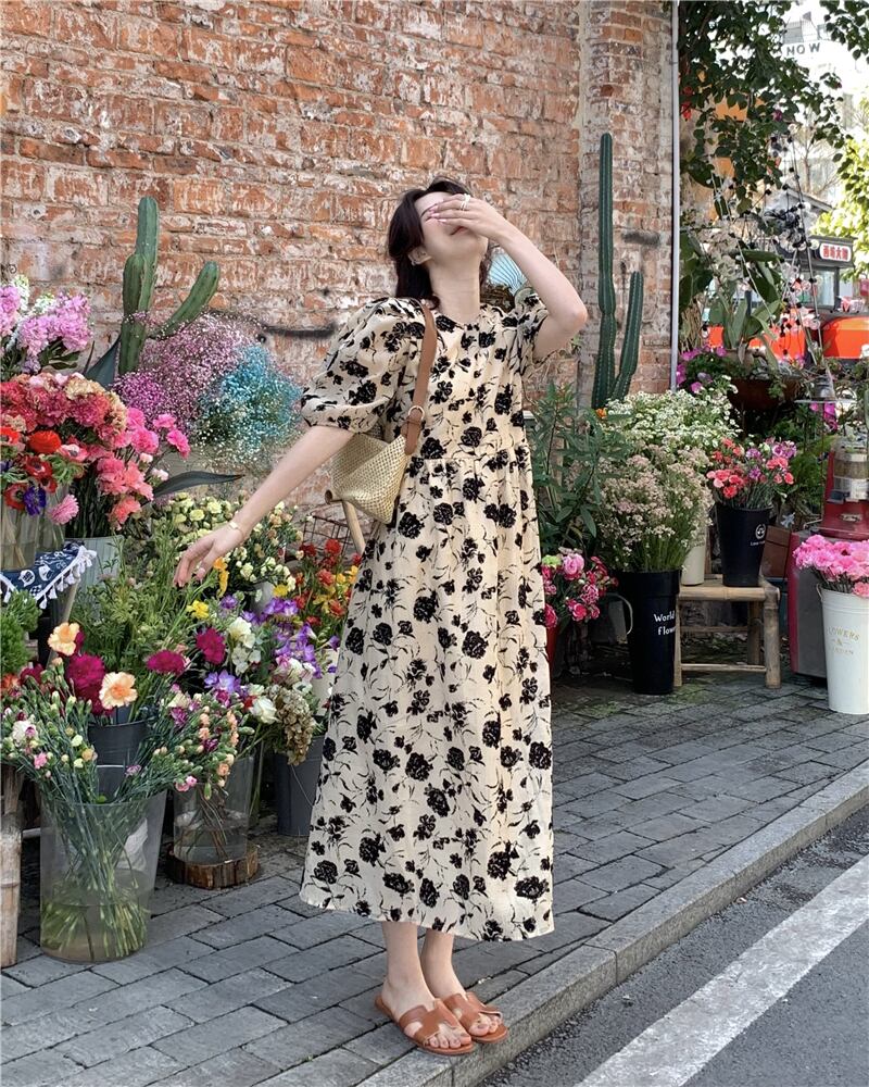 スリーブフローラルワンピース夏服スタンダードスカート レトロ 夏物 花柄 SYJ31348530566