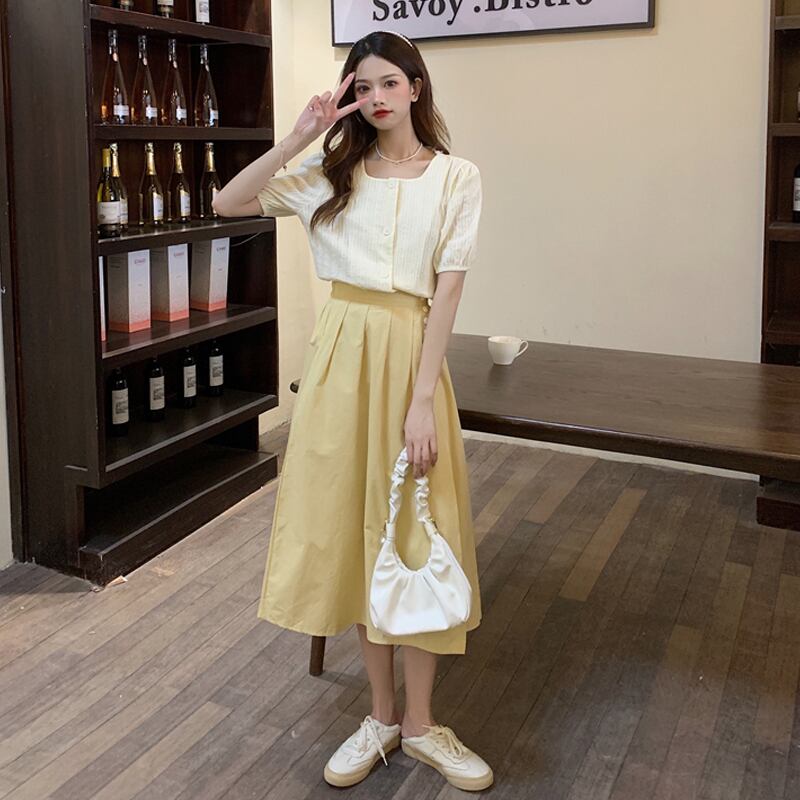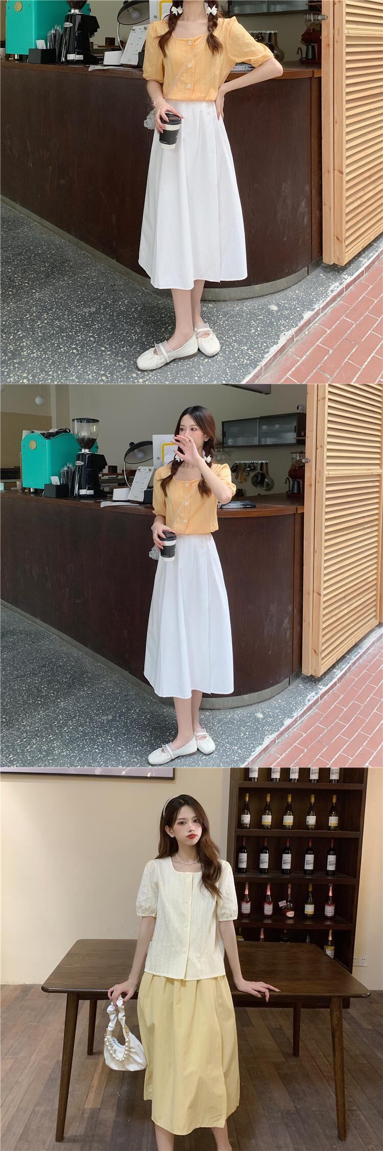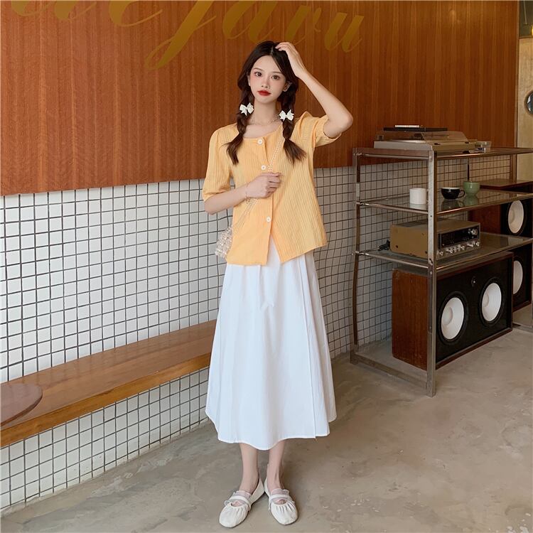 色:ワンピースアプリコットシャツ,オレンジシャツワンピース,白いシャツのワンピース,黄色のスカートワンピース,白いスカートワンピース,青いスカートワンピース