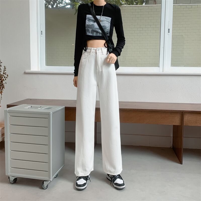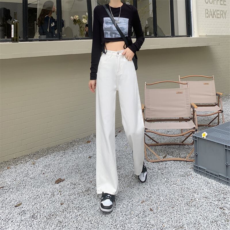 ホワイトジーンズ スプリングハイウェストウェストワイドレッグパンツ NEW 春物 ワイドパンツ ウエスト SYJ99466483989