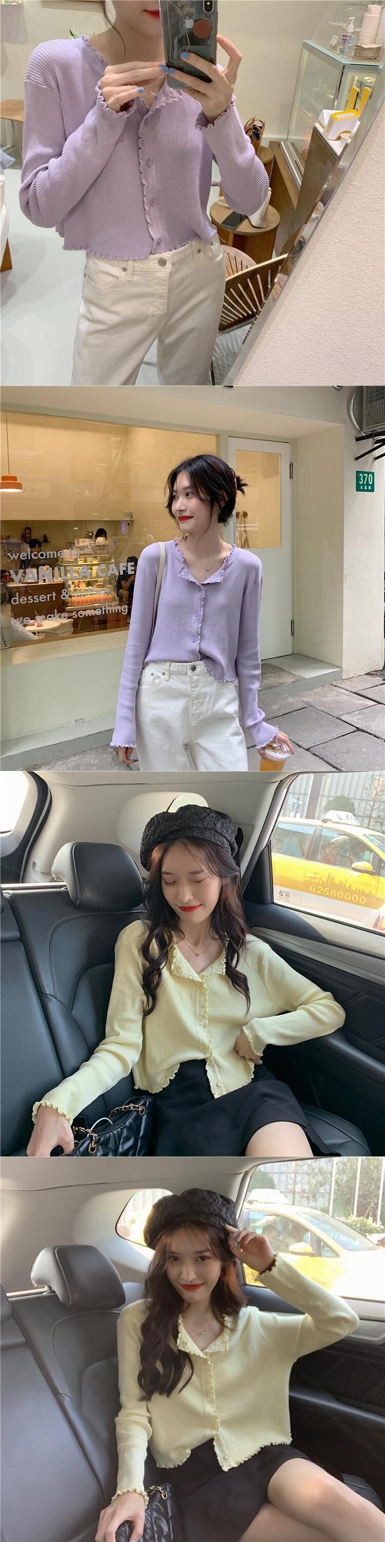 イエローニットカーディガンスプリングスタイルショートトップス ロング 大人ガーリー スウィート キュート カジュアル 春物 長袖 SYJ89063562034