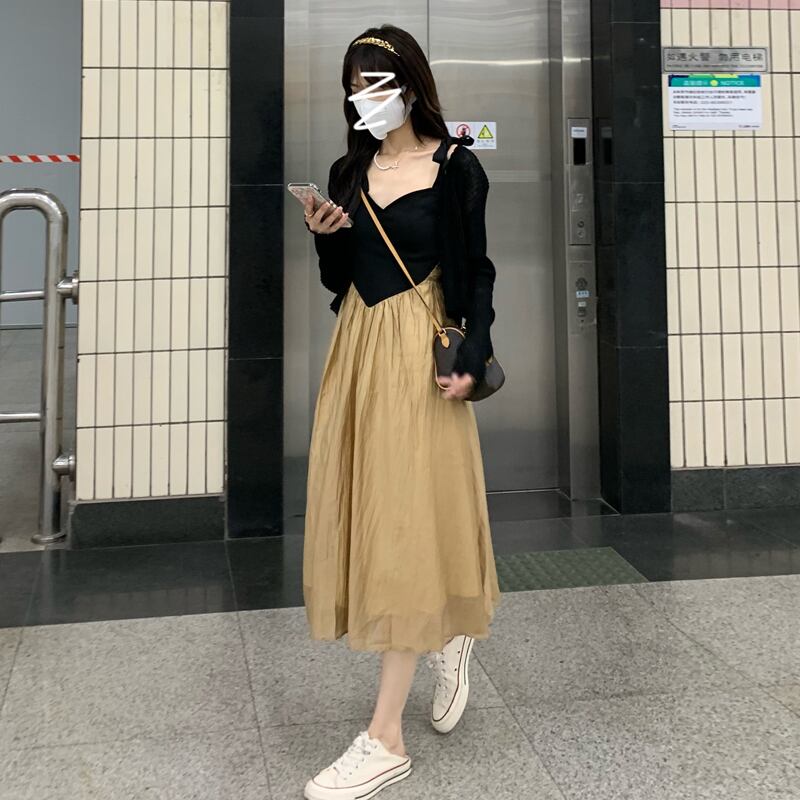 スタンダードワンピーススプリングウェストスリムロングスカート レトロ 春物 ウエスト SYJ3012801243