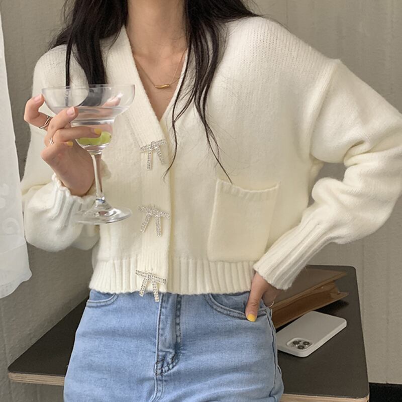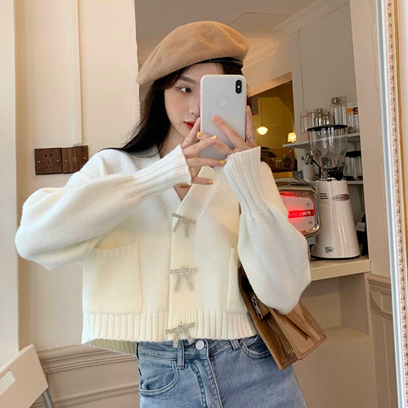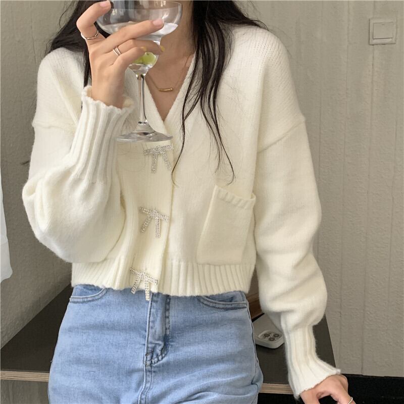 Vネックセーター コート スプリングショートニットカーディガン ロング 春物 長袖 SYJ12474188175