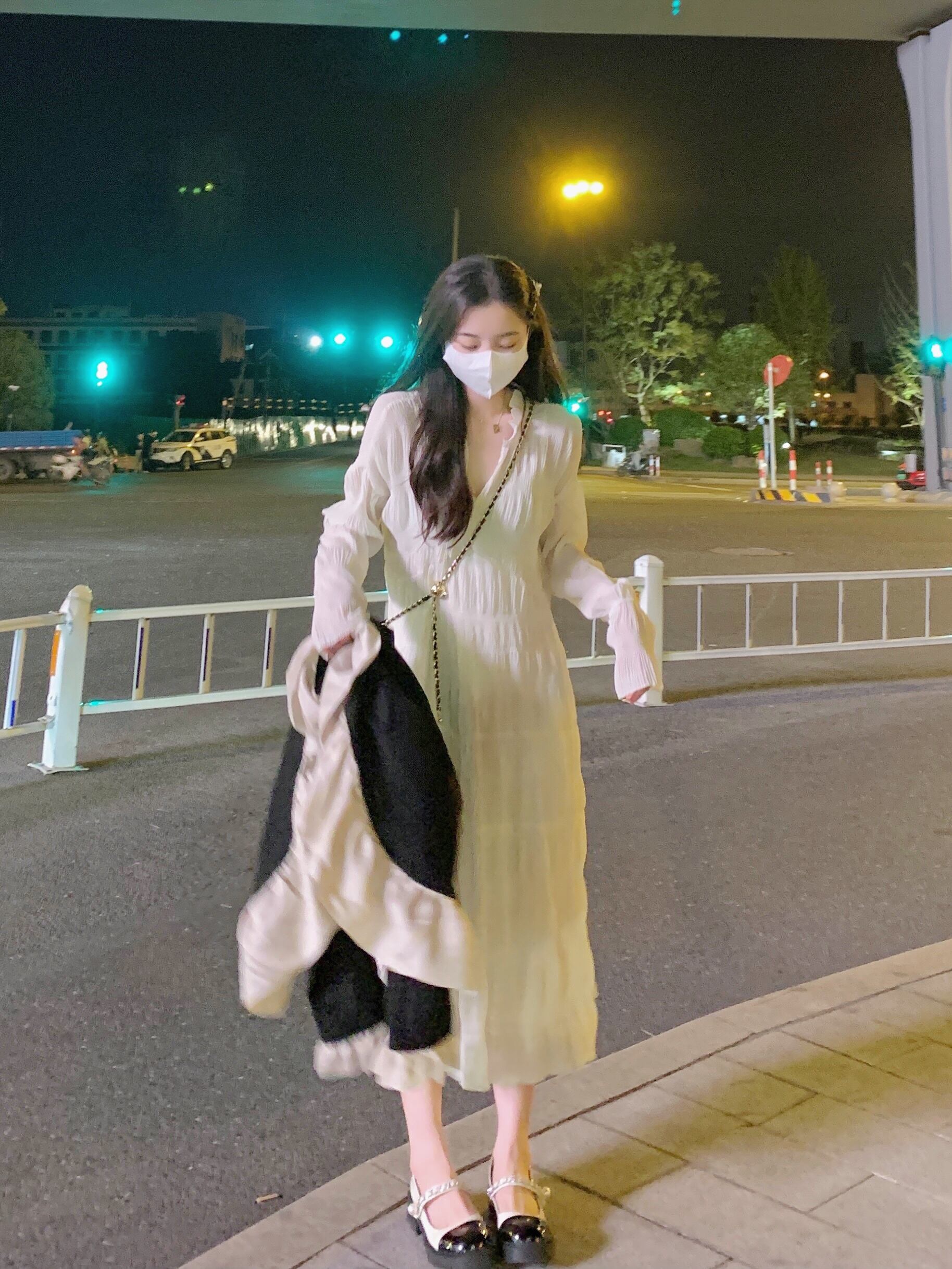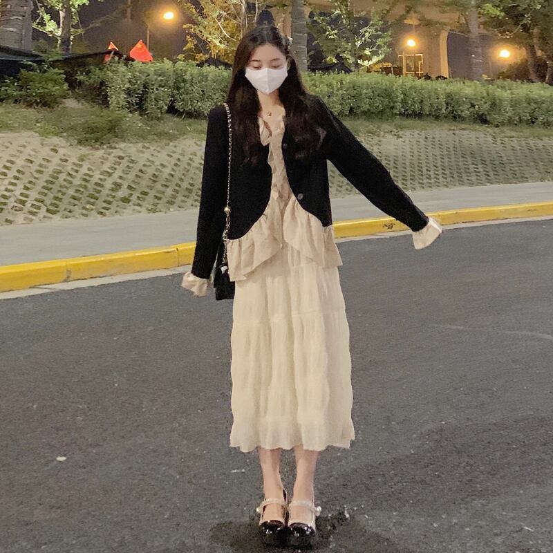色:スカートオフホワイトワンピース,ジャケットブラックシングル